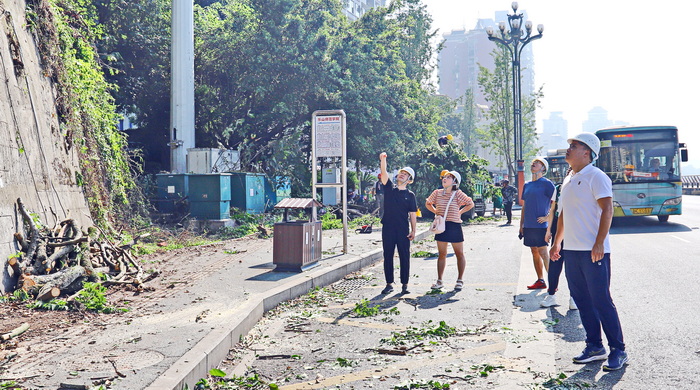 本网讯(文、图/代成刚)为践行“浦江经验”,切实解决好师生、市民急难愁盼问题,学校党委常委、副校长江滔继6月21日对北斗山树木存在的安全隐患问题开展现场调研之后,于7月22上午带领后保部领导班子,对北斗山树木安全隐患问题处置工作进行了现场指导。
