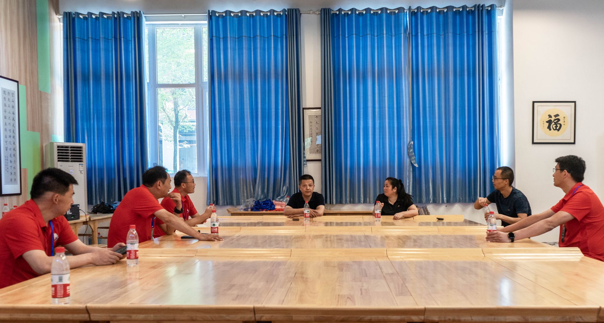 张峰就赛事的组织分工、场地器材、后勤保障、食堂卫生、安全保卫、医疗救护等方面工作进行了汇报;李军就比赛准备、运动员体测和竞赛安排进行了交流。听完汇报后,肖锋总监对赛区的赛事筹备工作给予了充分肯定。