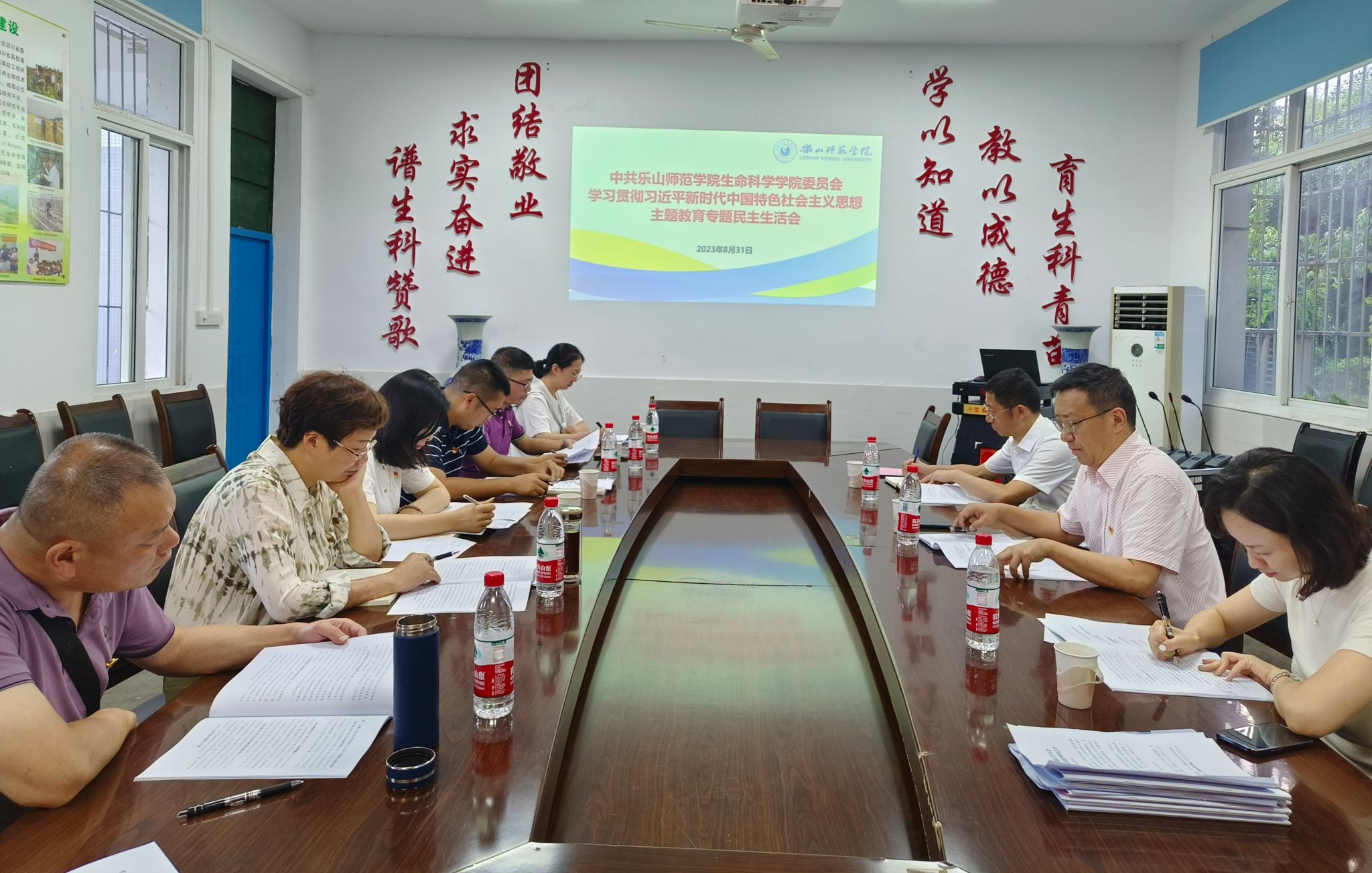 本网讯(文、图/易秀琴)8月31日下午,生命科学学院党委在博雅楼一楼会议室召开学习贯彻习近平新时代中国特色社会主义思想主题教育专题民主生活会。学校党委书记、党委第一督促指导组组长胡丹、党委第一督促指导组成员李同果和张锐到会指导。学院党委书记杨益主持会议,学院全体领导班子成员参会,学院纪检委员列席会议。