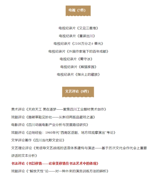 作为乐山市文艺评论家协会副主席,我校吴胜景博士参评的是文艺评论项目,他提供了将近15000字的文章《书以移情——论审美移情在书法艺术中的体现》,最终成功入选了四川省文学艺术界联合会2022年度“百佳推优”工程,充分展现了我校教师扎实的专业实力与学术水平。