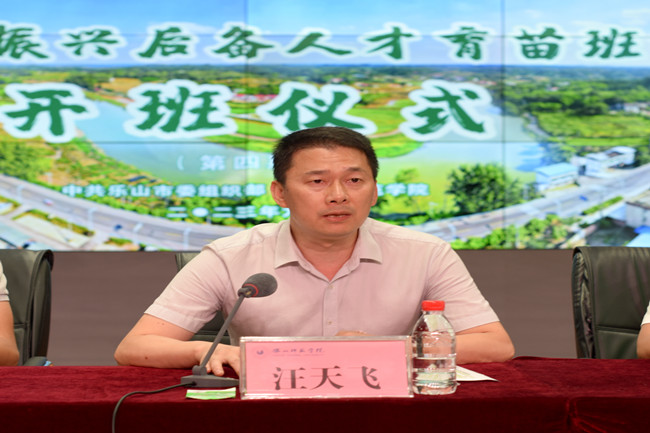本网讯(文/曹代第 图/周琴))9月7日晚,乐山市委组织部与我校联合开办的“乡村振兴后备人才育苗班”第四期开班仪式在我校旷怡楼学术报告厅隆重举行。学校党委常委、副校长汪天飞出席开班仪式并致辞,乐山市委组织部副部长、党建办主任、两新工委书记游全出席开班仪式并讲话,乐山市各县(市、区)党委组织部、高新区党工委相关领导,校外授课教师,市委组织部相关科室负责同志,学校相关部门负责人,教学院党委书记、院长代表,校内导师代表,跟岗实习生代表,第四期全体学员共计300余人参加开班仪式。仪式由党委组织部副部长周琴主持。