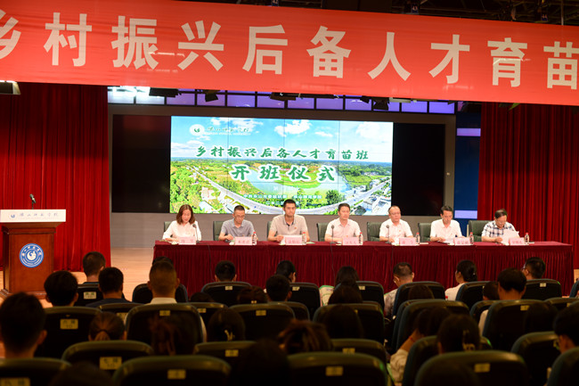 汪天飞在致辞中指出,“育苗班”是我校贯彻落实习近平总书记关于推动乡村人才振兴的重要指示精神,围绕抓好“党的各项事业后继有人”这个根本大计的创新举措,“育苗班”的创新模式也受到上级的积极肯定和国内、省内各大媒体的专刊报道。他结合主题教育“以学铸魂、以学增智、以学正风、以学促干”的要求,期望同学们做到胸怀大局、奋勇担当,勤学不怠、久久为功,笃学不倦、勤学善思,踔厉奋发、笃行致远,主动投身乡村振兴的浪潮中,把火热的青春献给乡村。