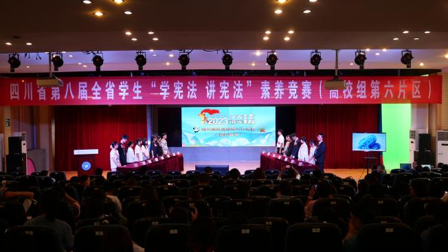 本网讯(文/杨雯婷 李玉锦 图/张启军 章培榆)为扎实推进普法教育宣传,大力弘扬法治精神,提高学生法治意识,引导学生做知法、懂法、守法好青年。2023年9月6日上午,由四川省教育厅主办、乐山师范学院承办的“四川省第八届全省学生‘学宪法 讲宪法’演讲比赛和素养竞赛(高校组第六片区)”在学校旷怡楼一教八阶和音乐学院邦泰学术报告厅成功举行,来自第六片区15所高校的师生代表参加比赛,青少年法治教育中心主任陈鹏一行莅临现场指导。