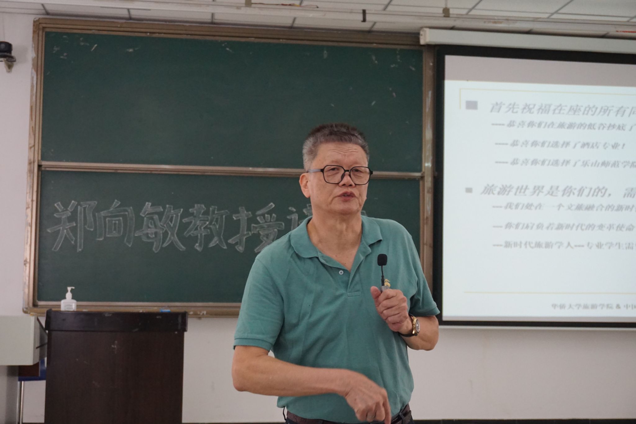 郑向敏教授祝贺同学们进入旅游专业学习,他分享了自己学生时代的经历,激励同学们把握好学习机会。郑教授从颠覆传统、变革与创新、知识密度与知识结构调整三个方面概括了新时代的特征,从肩负新时代的变革使命阐述了旅游学科的重要性,从新时代旅游专业学生需要做什么的视角出发,对同学们今后的专业学习提出了希望和要求。