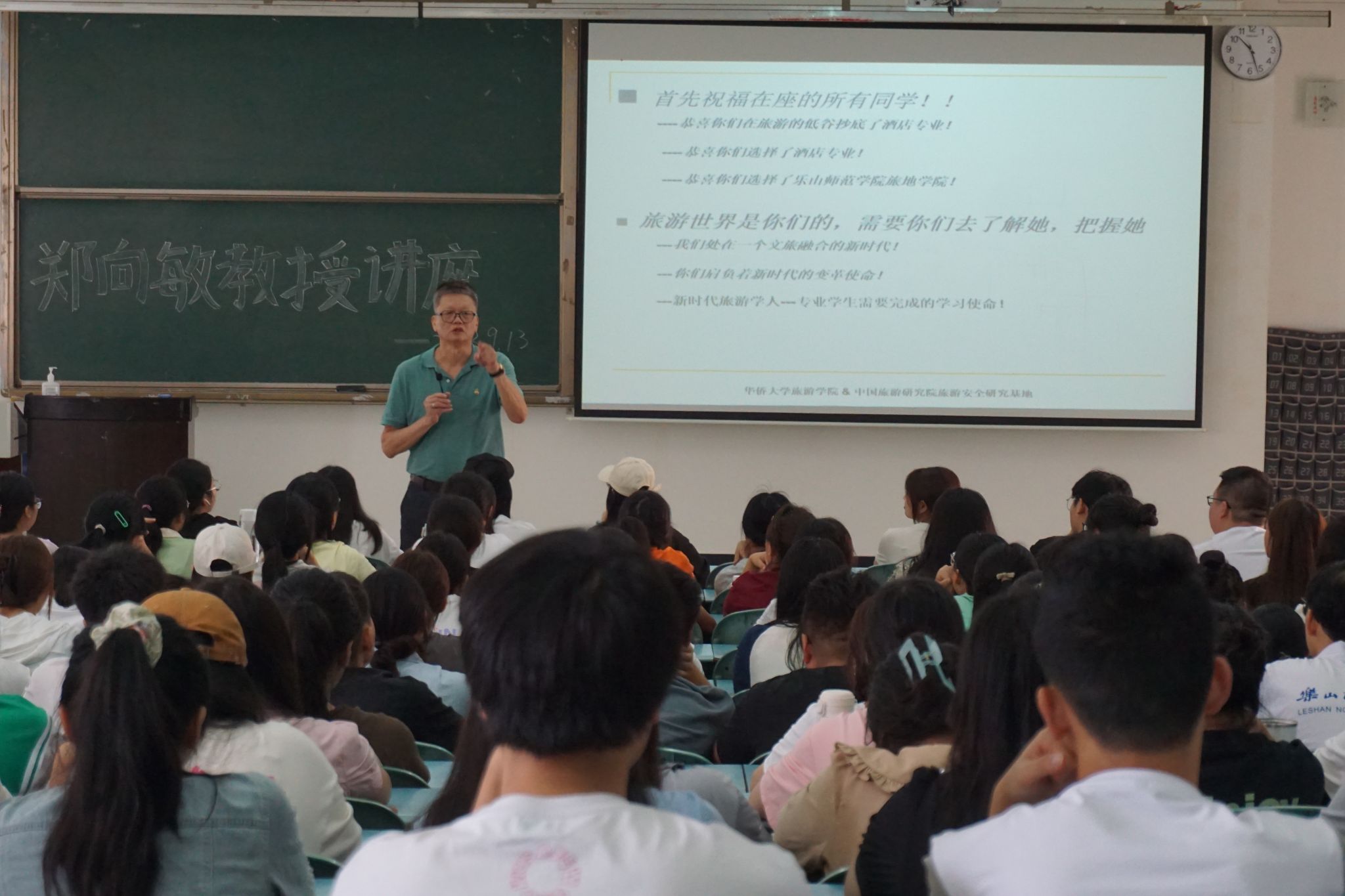 本网讯(文/刘晓玫 图/江馨雨)为提升新生对旅游专业的认识,9月13日,旅游与地理科学学院特聘专家——华侨大学旅游学院创院院长、博士生导师郑向敏教授在行知楼201教室以“学好旅游专业,走进旅游世界”为题为2023级新生做了一场专业思想教育讲座。