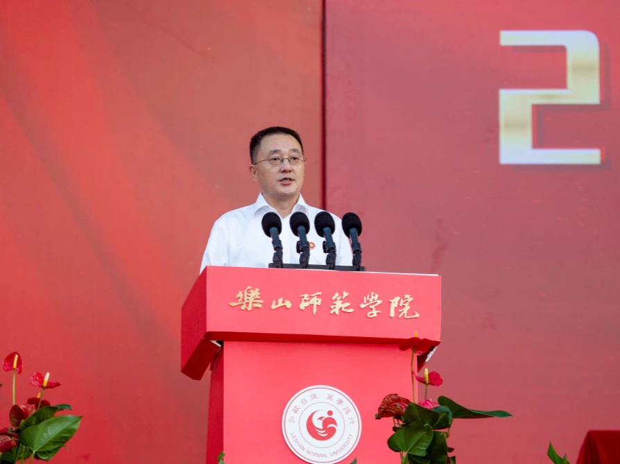 9月14日上午,乐山师范学院2023级新生开学典礼暨国防教育动员大会如期在北校区运动场举行。开学典礼上校长刘进寄语新生,分享了自己对“追求至善之境,成就最好自己”感悟,并对所有追求至善的乐师青年,提出了三点希望。一是情怀至善,做心怀家国的逐梦者;二是求知至善,做笃学践行的探索者;三是意志至善,做刚毅坚卓的苦行者。希望大家以大爱的情怀、求知的执着、坚韧的意志,追求人生的至善之境,书写人生的精彩华章,成为最好的自己。