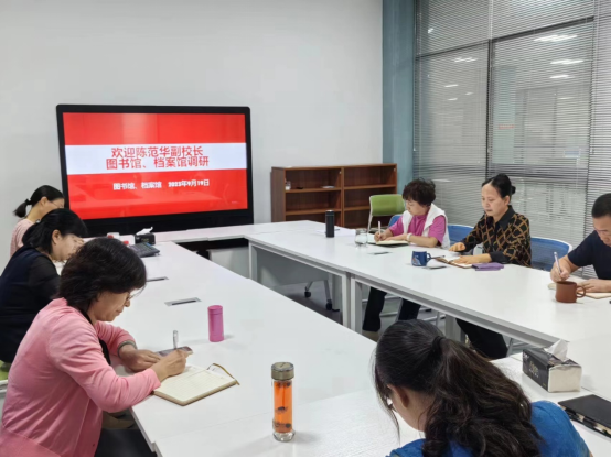 本网讯(文/蔡小筱 图/章宇)9月19日,党委常委、副校长陈范华到图书馆开展调研工作。图书馆、档案馆馆长钟英,直属党支部书记张静,副馆长张晓明及馆务会成员一同参加了此次调研。调研会在图书馆108-4室召开。