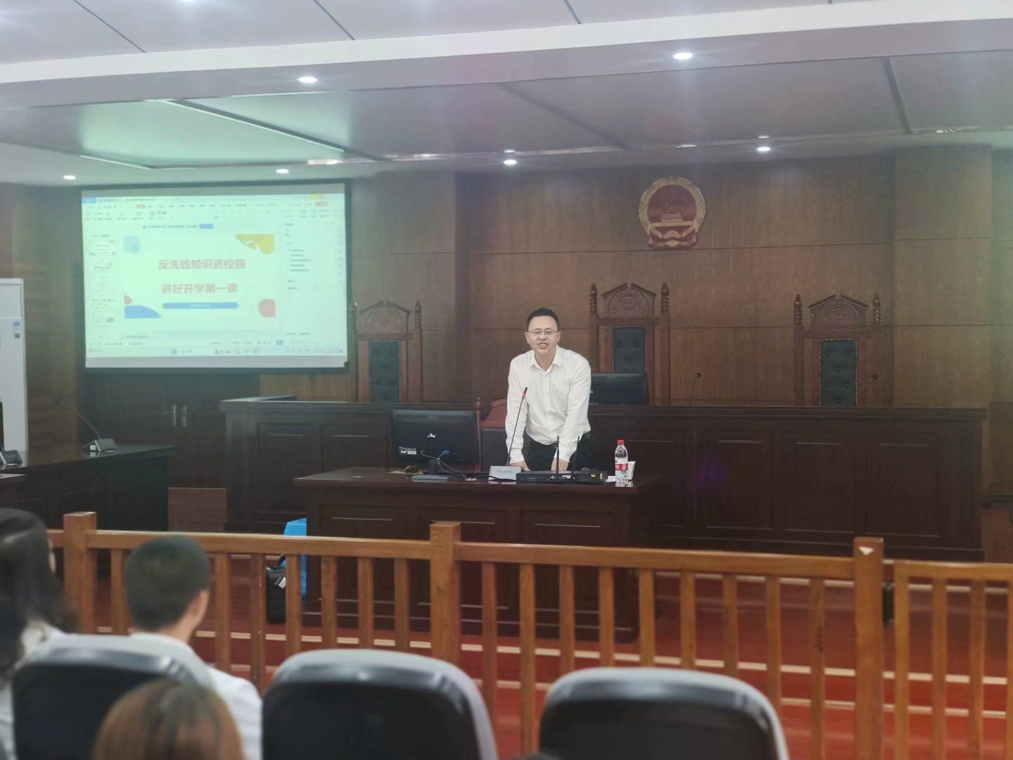 讲座上,熊伟首先向学校、学院表达了衷心的感谢,在感叹时光飞逝、学校快速发展的同时,也鼓励学弟学妹们乐于追梦、勤于圆梦,要做有理想,有本领,有担当的青年人。紧接着,他及同单位的宣传工作者向学生们普及了《反洗钱法》《反有组织犯罪法》《反电信网络诈骗法》等法律知识,进一步提升了学生们对洗钱、黑社会性质组织犯罪、电信网络诈骗等犯罪活动的法律认识。同时以案释法,通过播放洗钱罪典型案例视频,聚焦洗钱行为及刑事后果,进一步警示学生们自觉远离洗钱犯罪。最后,现场组织了反洗钱、反诈骗知识互动问答,与会学生参与积极、回答踊跃。