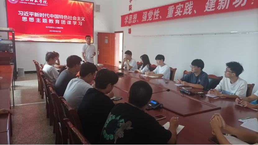 本网讯(文图/高明睿)电子信息与人工智能学院于9月22日在特教C501组织开展了习近平新时代中国特色社会主义思想主题教育团课。本次团课由分团委书记强光平主持,辅导员狄红霞以及21级,22级全体团支书与班长共同参与。