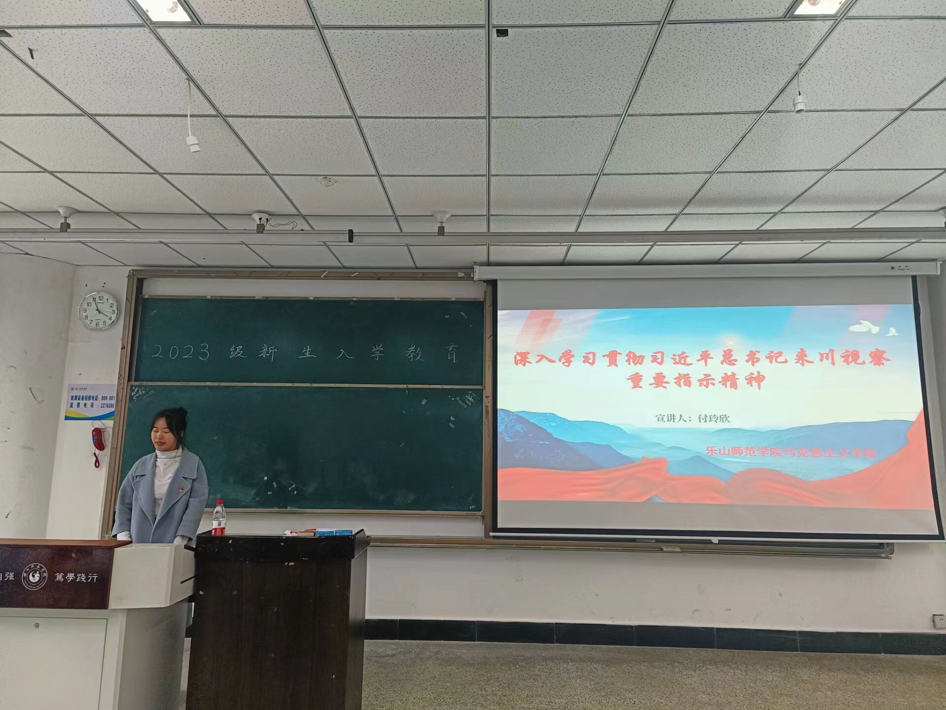 本网讯(文、图/江琳)为引导青年学生学习领会习近平总书记来川视察重要指示精神的科学内涵,感受“让文物承载的中华文化焕发时代光芒”“不断探索,把中华文明历史研究引向深入”的非凡意义,法学与公共管理学院于10月12日在行知楼114开展理论学习,专题学习领会习近平总书记来川视察重要指示精神,本次学习邀请了马克思主义学院“乐师红帆”理论宣讲团的付玲欣同学来宣讲。法管学院党委副书记翟雅媛、分团委书记杨兵、各年级辅导员及学生共同参加了本次学习。