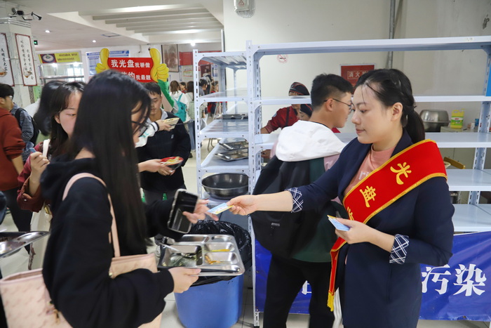 活动内容:一是活动前,在后保部网站、校园网主页通知公告栏发布关于开展世界粮食日节粮活动的温馨提示;二是在学生食堂门口张贴节约粮食倡议书,发放节约粮食宣传资料,广泛宣传节约美德;三是于10月16日在学生食堂就餐大厅安排“光盘监督员”,向“光盘”的师生员工发放“光盘券”;四是10月16日至18日师生员工凭一张“光盘券”在食堂免费领取一个鸡腿,以此鼓励广大师生节约粮食。