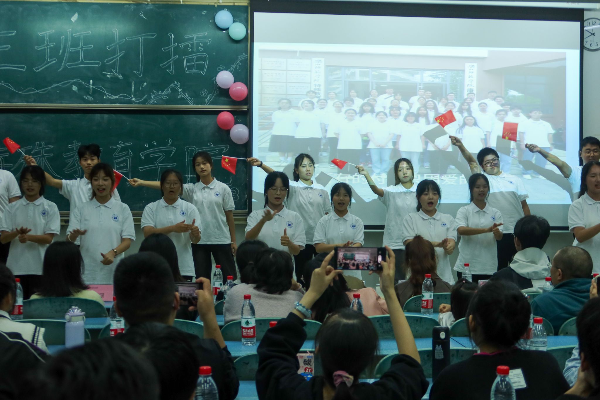 本网讯(文/申佳鹭 图/侯岚欣、李灵玉)为彰显班级风采,增强班风建设。10月13日晚,特殊教育学院、康复学院在行知楼125教室举办了特殊教育学院、康复学院2023届“三班打擂”比赛。学院党委副书记兰芳,全体辅导员,以及10余名23级学生指导老师到现场为同学们加油鼓劲。 本次活动由学院特殊教育系系主任王欢,残疾人教学部主任生辉,辅导员助理王梓阳,分团委副书记李旭旻,学生分会主席黄桂萍以及学院易班分站站长何庆珊担任评委。由2023级学生魏丽郦和樊洪伶主持。