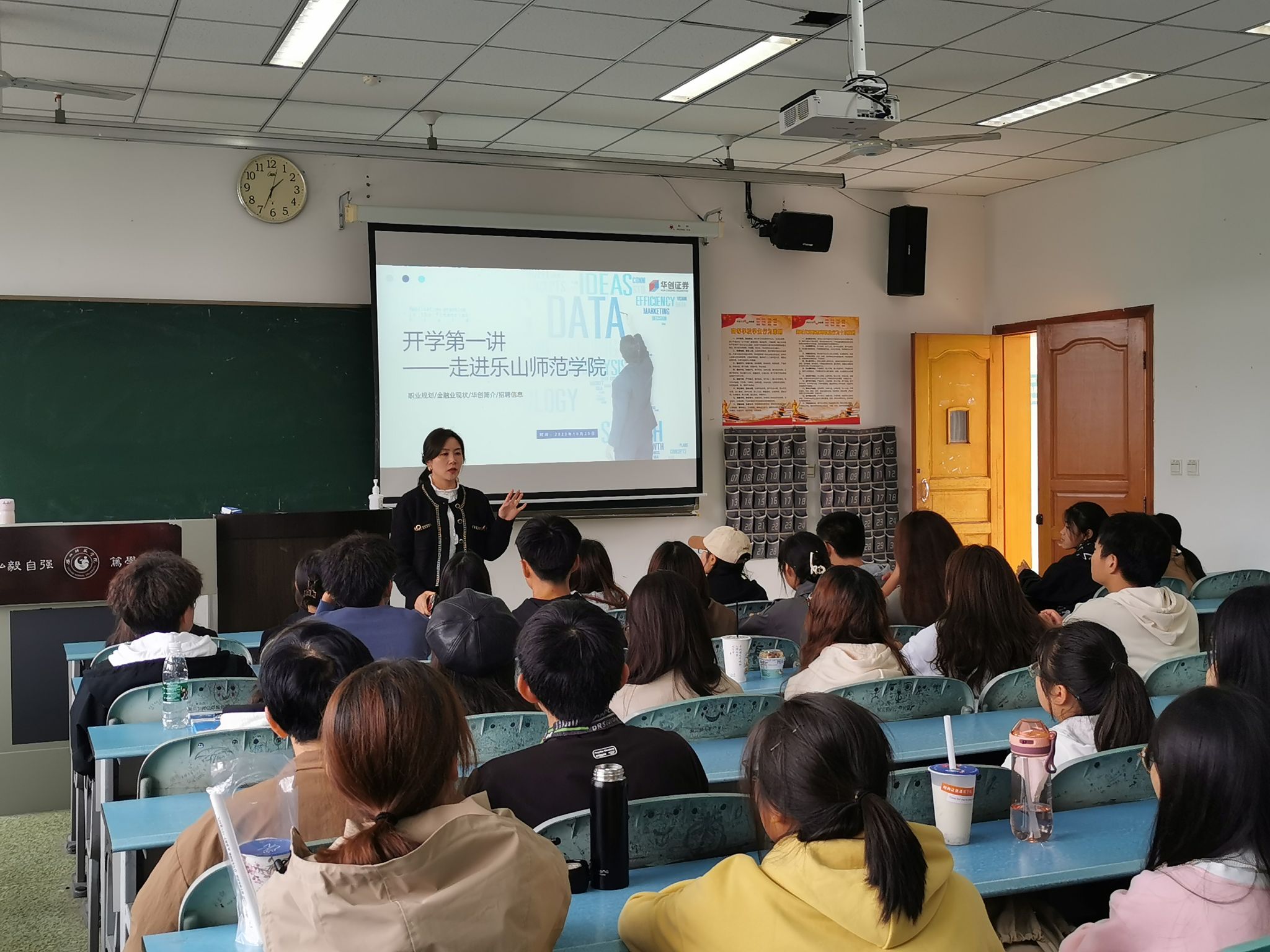 本网讯(文、图/谢贻美)为了帮助2023级金融数学专业学生更全面了解自己的专业以及做出合适的职业规划,引导学生扣好职业生涯的第一颗纽扣,推进我院“校企携手”工作迈向新台阶,我院于2023年10月19日邀请深圳希施玛数据有限公司产品研发部经理王春生在行知楼326为学生开展了“金融科技与量化投资”的线上专题讲座。随后,于2023年10月26日邀请华创证券四川分公司综合部经理来婷婷、贾婷、亢彩霞在行知楼326为学生开展了“追逐梦想,勇往直前”的金融数学专业职业发展规划专题讲座。