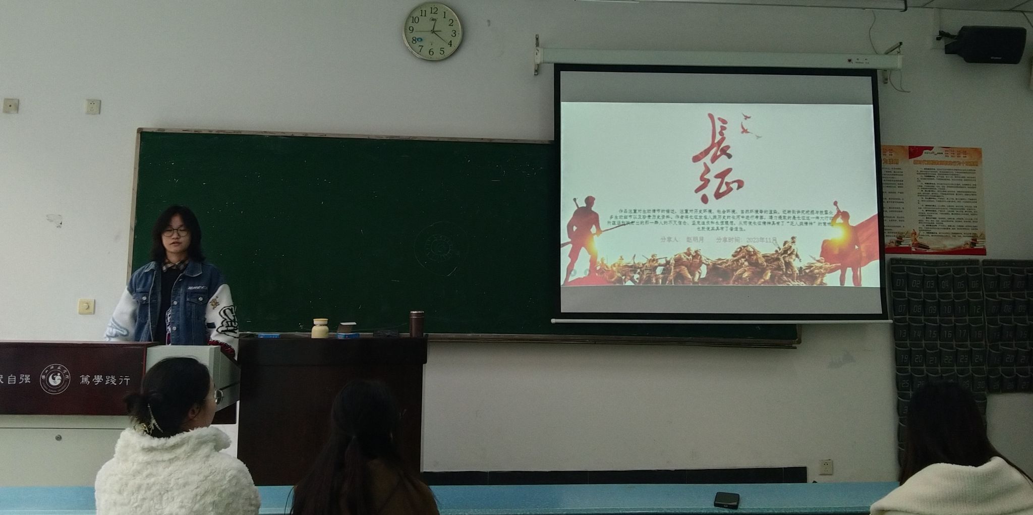 本次活动内容为5名发展对象分享红色经典书籍。杨晨曦同学介绍《林海雪原》充分体现出了战士们发挥了大智大勇,激励我们不畏生活中的艰难险阻,勇往向前。牛嘉欣同学介绍了《苦难辉煌》,激励着大家肩负起新时代青年的使命与担当,为民族为人类做贡献。金燕同学介绍《谁是最可爱的人》,激发出大家心中浓浓的爱国情与深深的为国奋斗意。赵明月同学介绍《长征》,展现了中国共产党的伟大精神和中国人民的奋斗精神,激励更多的人为实现国家繁荣和人民幸福而努力奋斗!李由艳介绍了《中国共产党简史》,点出了该书特点鲜明,它坚持大历史观和正确党史观,集中彰显了党在各个历史时期锻造的伟大精神。
