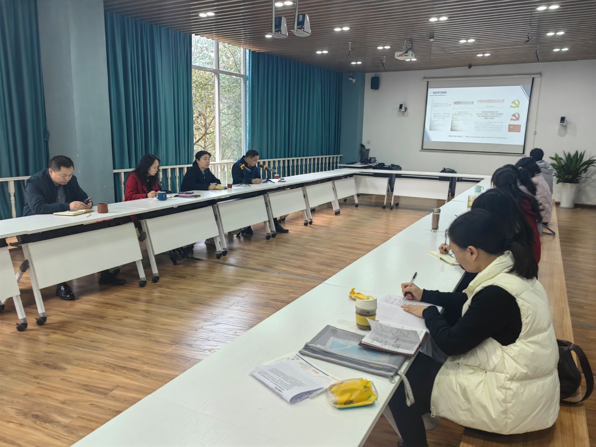 张波首先传达了全国、四川省、乐山市组织工作会议相关精神,带领大家认真领会习近平总书记关于党的建设重要思想;随后组织学习了《中国共产党党徽党旗条例》《四川省高校纪检组织工作办法(试行)》《领导干部违规插手干预重大事项记录和报告办法(试行)》等多个文件并传达了上级相关要求。