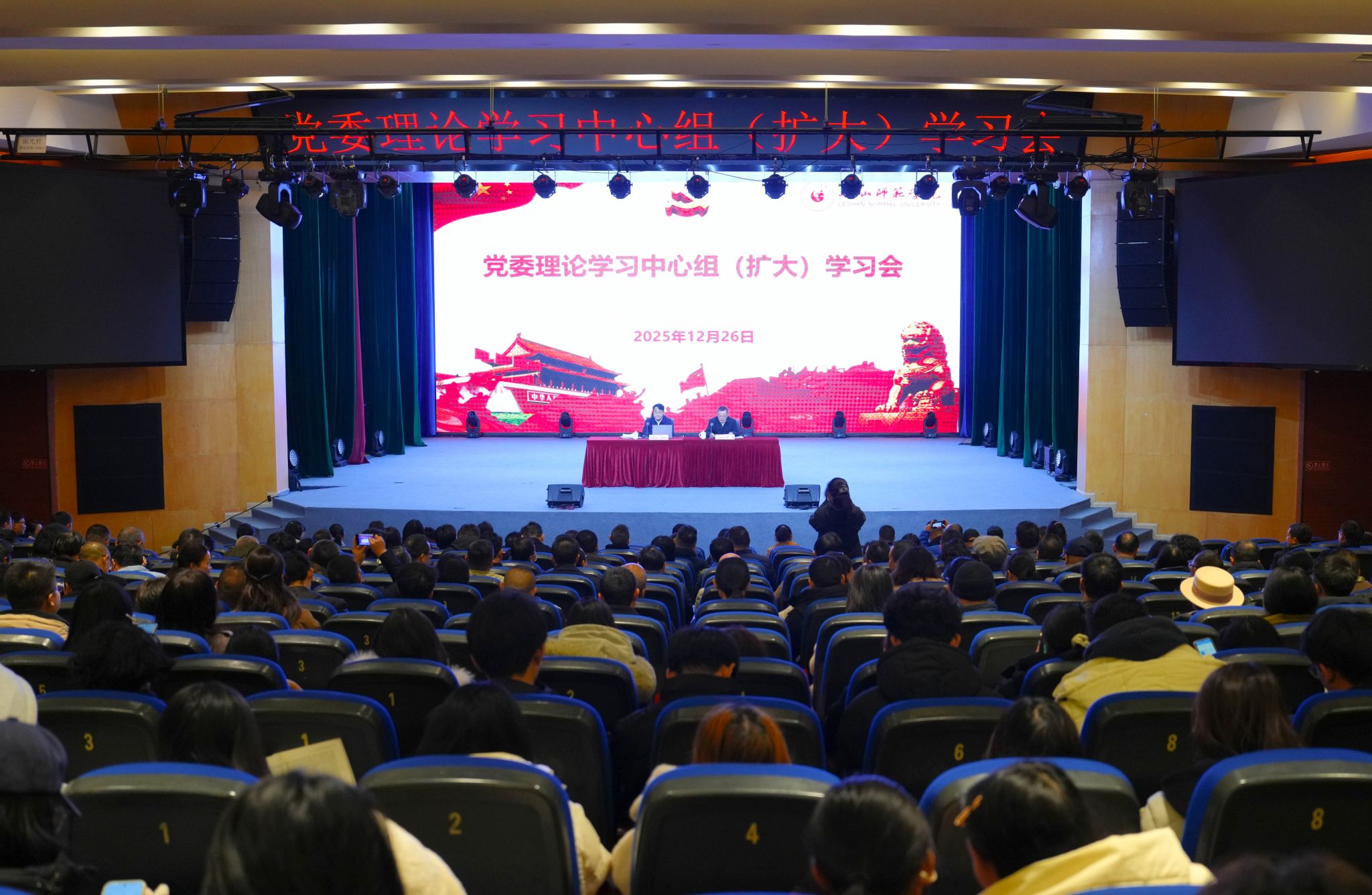 本网讯(文图/融媒体中心)12月26日,学校在实训楼多功能厅召开党委理论学习中心组(扩大)学习会,特邀中共四川省委党校(四川行政学院)副校长、省委宣讲团专家组成员、省委省政府决策咨询委员会委员裴泽庆来校,作题为《学习贯彻党的二十届四中全会和省委十二届八次全会精神》的专题辅导报告。校党委书记刘进主持会议并讲话。全体校领导、处科级干部,师生代表参加学习。