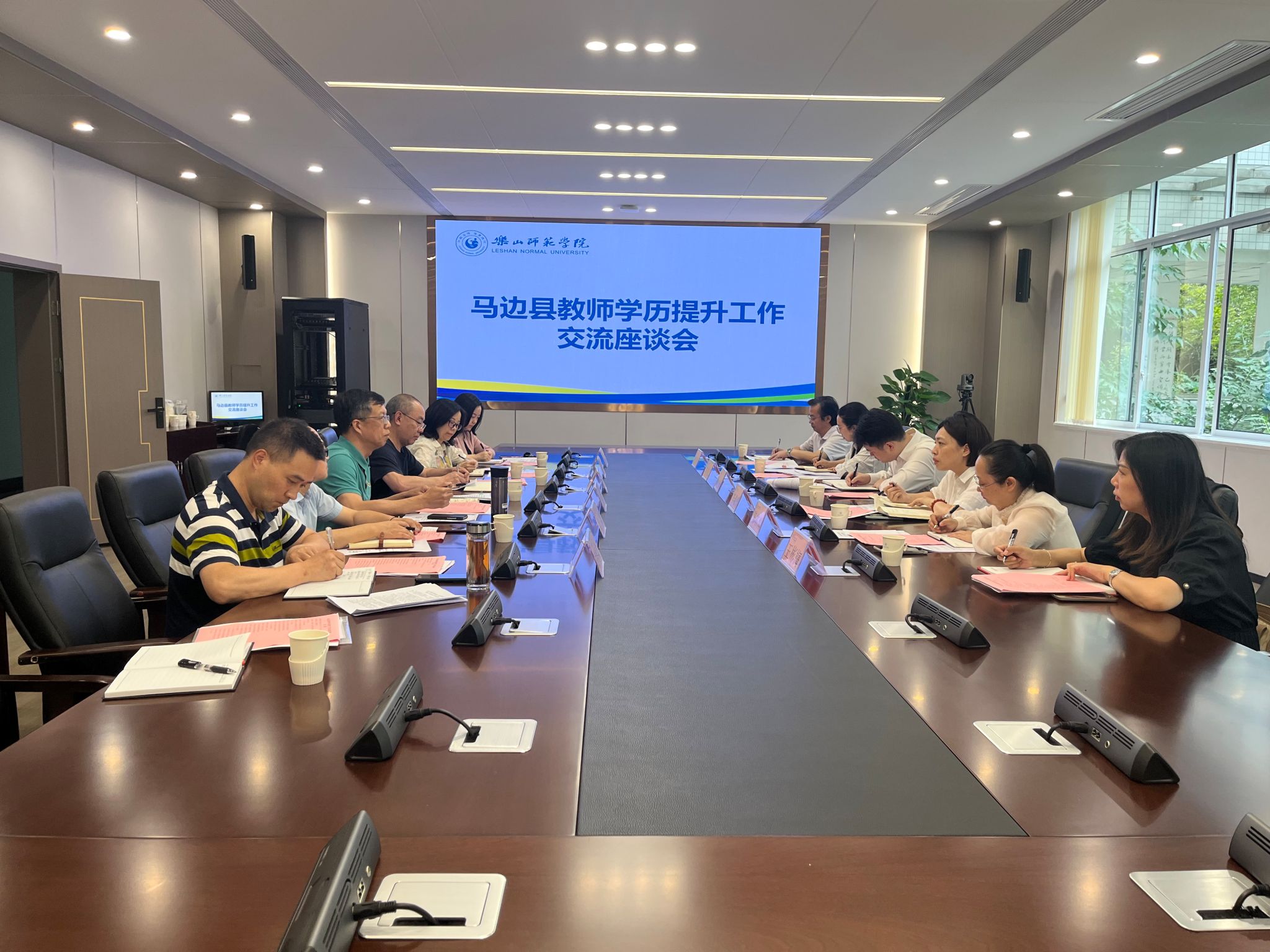本网讯(文图/李杉)6月5日,乐山市委教育工委副书记李希瑶、马边县委常委、组织部部长杨益一行来校商谈基础教育人才学历提升工作。校党委常委、副校长李朝晖主持会议并讲话,校地合作处、教师教育学院、继续教育学院负责人参加会议。