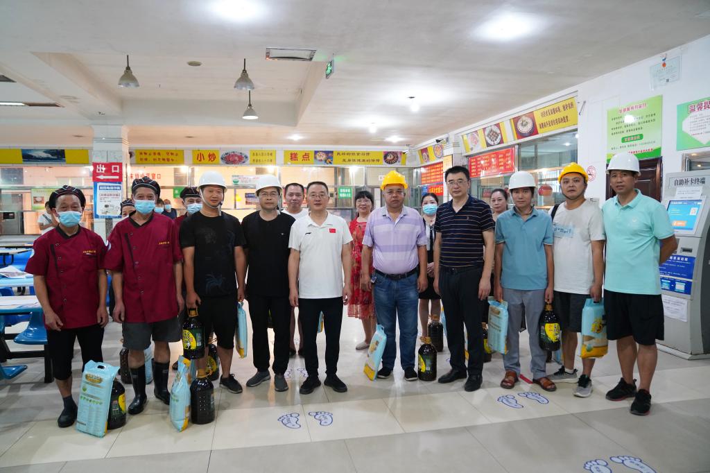 本网讯(文图/梁晨)炎炎夏日,学校后勤保障部、基建处大部分职工顶着高温、冒着酷暑,在服务保障一线坚守岗位。7月27日,党委副书记、校长刘进,党委常委、副校长李方裕深入后勤保障一线,慰问维修中心、饮食服务中心、学生公寓中心一线员工,为他们送去了慰问品。