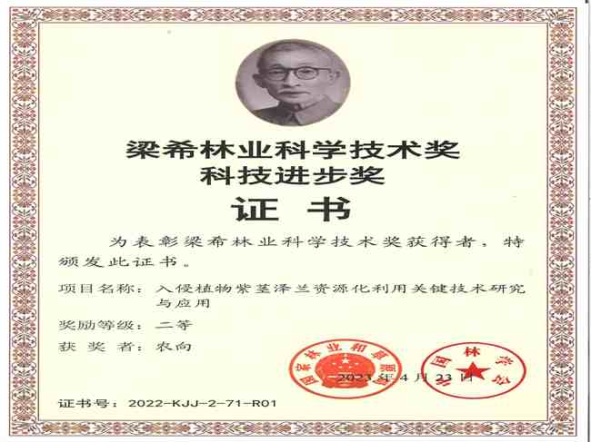 梁希林业科学技术奖是经国家科学技术部批准面向全国的林业科学技术奖,是我国林业行业最高水平的科技奖项,主要奖励在林业科学技术进步中做出突出贡献的集体和个人,其目的是鼓励林业科技创新,充分调动广大林业科技工作者的积极性、创造性,促进林业科技事业的发展,加快实现林业跨越式发展。近年来,我校科研人员以国家、区域科技需求为导向,坚持不懈,林业科技创新成果不断涌现。我校作为主持单位首次获得梁希林业科技进步奖二等奖,充分展示出我校在林草研究领域和服务地方经济发展上的科研能力。