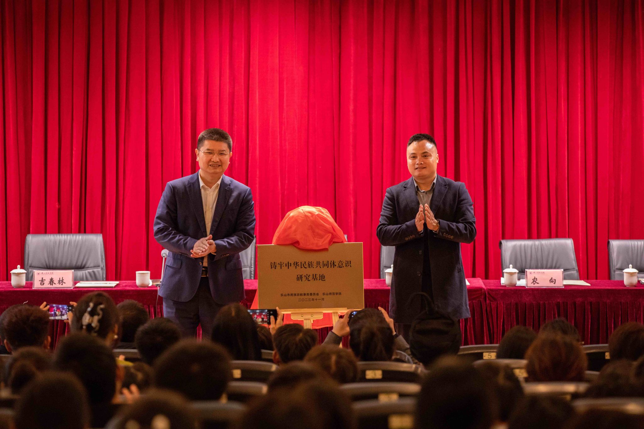 仪式上,江滔首先向出席本次签约揭牌仪式的领导、嘉宾和同学们表示热烈的欢迎,向乐山市委统战部、乐山市民宗委长期以来支持学校发展表示衷心的感谢。他表示,近年来,学校高度重视铸牢中华民族共同体意识工作,积极发挥人才与智力优势推动民族地区脱贫成效巩固与乡村振兴战略,为民族地区培训师资和基层干部,选派大学生到民族地区顶岗支教,精准帮扶马边、美姑、雷波等,为推动民族地区高质量发展做了大量工作,取得了显著成效。他说,下一步,学校将认真贯彻落实习近平总书记关于加强和改进民族工作的重要思想,紧紧围绕铸牢中华民族共同体意识主线,认真落实习近平总书记关于“加强学科建设,把准研究方向,深化中华民族共同体重大基础性问题研究”“注重激发广大专家学者的积极性主动性创造性,加强青年专家学者的培养,为他们把好方向、搭建平台、创造机会”的要求,构建铸牢中华民族共同体意识研究体系。基地专家团队要扎实做好乐山市乡间田野调查,梳理总结乐山市的实践经验,共同推动铸牢中华民族共同体意识的理论与实践体系构建,为新时代民族工作高质量发展做出更多贡献。