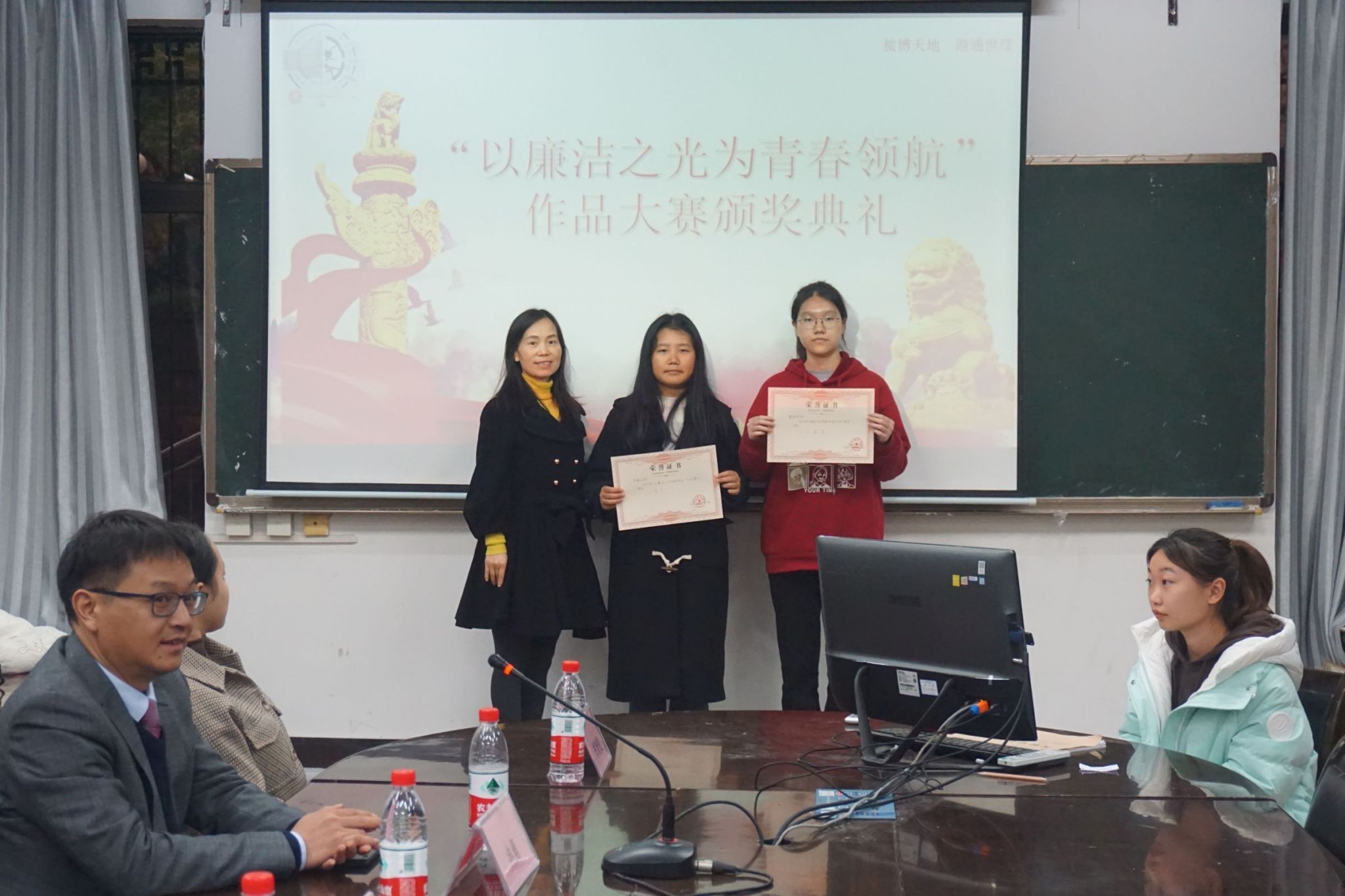 接着,与会领导和老师为获奖的同学颁发了荣誉证书。冉勇以廉洁诚信为主题为同学们讲了廉洁党课,强调了廉洁诚信在个人道德品质、人际关系与职业发展中的深远影响,希望青年人在实现个人发展过程中要高度重视廉洁诚信建设。