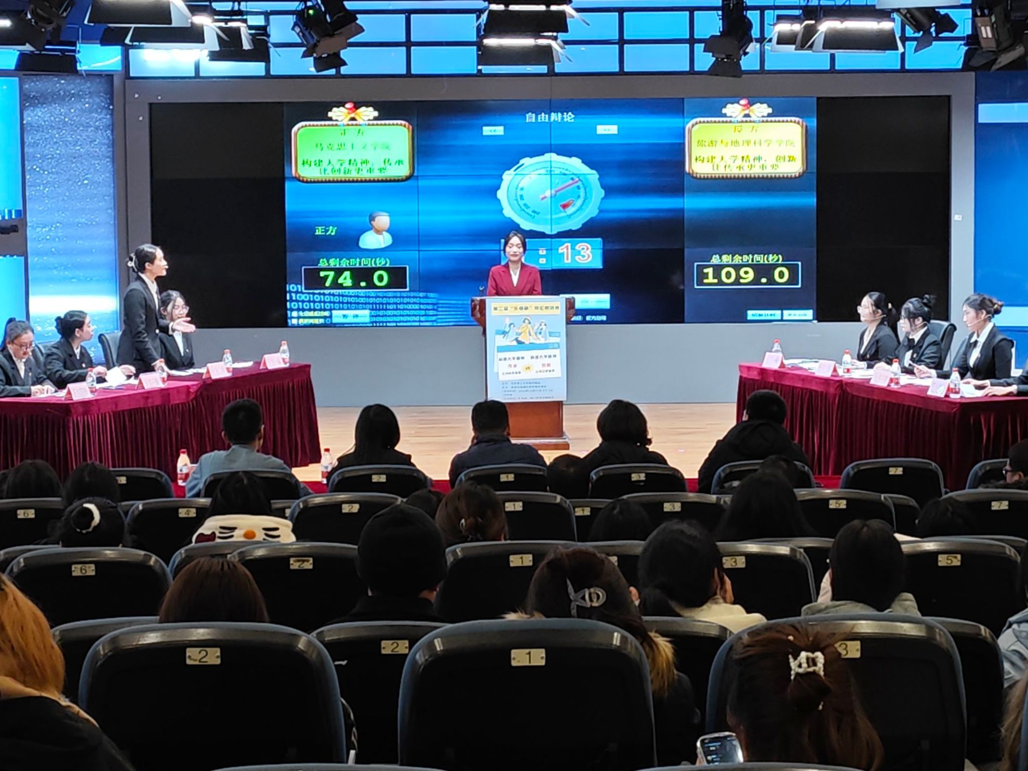 比赛围绕“构建大学精神,传承和创新谁更重要”的热点辩题,由正反双方展开激烈辩论。辩手们集逻辑性、思想性、明辨性、前瞻性于一体,在赛场上旁征博引、妙语连珠,现场高潮迭起、精彩纷呈,赢得台下阵阵喝彩。