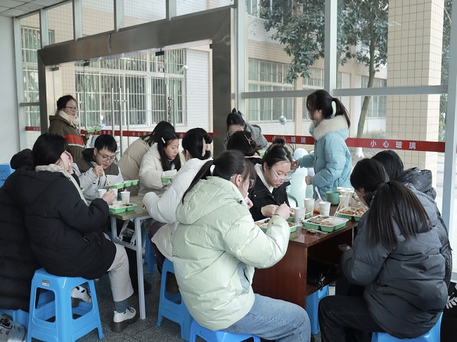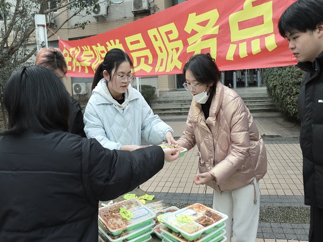 为了让同学们保持最好的状态考试,减少买饭排队时间。生科学院在化生实验楼设置了党员服务点,提前征集了考研同学的饮食喜好,在考试结束前将营养餐取到休息点。学院还准备了暖心的祝福语、热水和糖果,希望能在第一时间给予考研学子们关心和温暖。