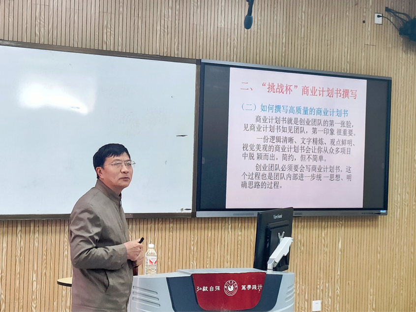 本网讯(文/杨宝珠、朱文静 图/朱天裕、吴瑾妤 )为进一步做好学校“小挑”竞赛项目的遴选与培育工作,提升参赛作品质量,3月7日下午,校团委在行知楼智慧教室举办了“小挑”专题培训会。会议邀请经管学院郭美斌教授担任主讲,全校23个立项项目指导老师及学生参加了此次培训。