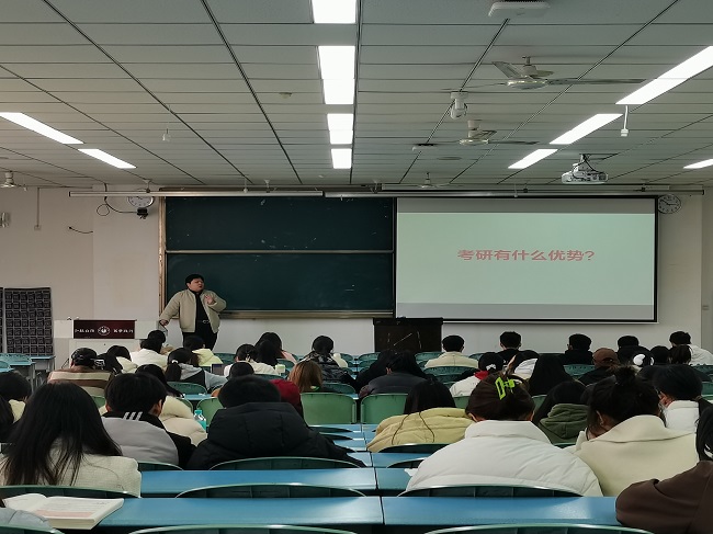 随后,张思远为同学们讲述了国内的考研现状,从选学校到选专业,从复习到考试,从考研的各个环节作了详细的讲解。在互动环节,张思远根据同学们的考研目标,给予了不同的建议。最后,包天骏鼓励同学们早日确定目标院校,做好复习规划和安排,他强调:“在考研路上,选择比努力更重要”。希望同学们能结合自身实际情况,了解心仪院校及专业的相关知识,选择适合自己的考研道路。