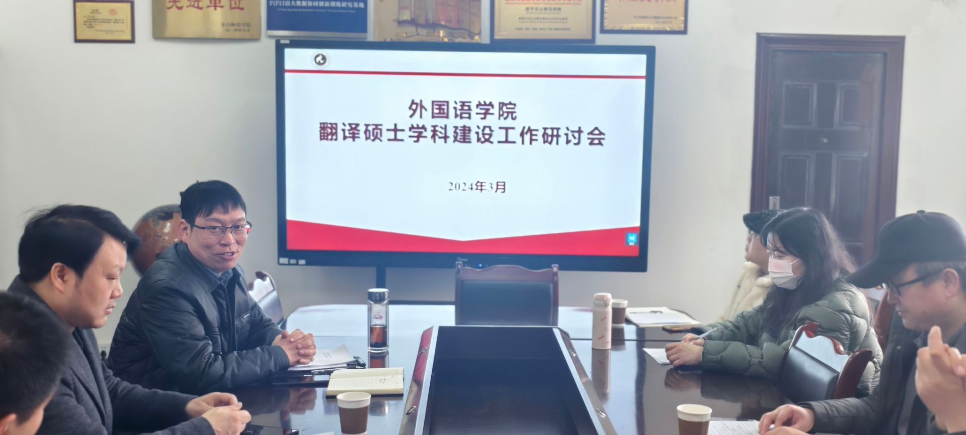 本网讯(文/景爱民 图/雷洪敏)为进一步明确翻译学科发展目标、落实重点工作任务,3月13日上午,外国语学院在学院三楼党政办会议室举行了2024年春季学期翻译学科建设研讨会。本次研讨会由学院副院长陈开富主持,学院院长江世勇、副院长徐波,翻译学科团队骨干教师代表、学院教学与科研管理办公室及学生工作办公室相关老师参加了本次研讨会。