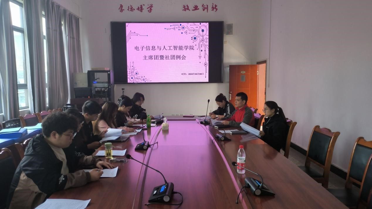 本网讯(文图/姜星宇)4月8日,电智学院在特教C501召开了主席团暨社团例会。本次会议由电子信息与人工智能学院分团委书记强光平,辅导员雷雄锴、肖苗、狄红霞,主席团各成员以及各社团的社长共同参与。