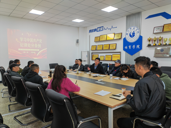 会议最后,体育学院党委副书记、纪委书记王美带领大家一起学习了2023年修订的《中国共产党纪律处分条例》。