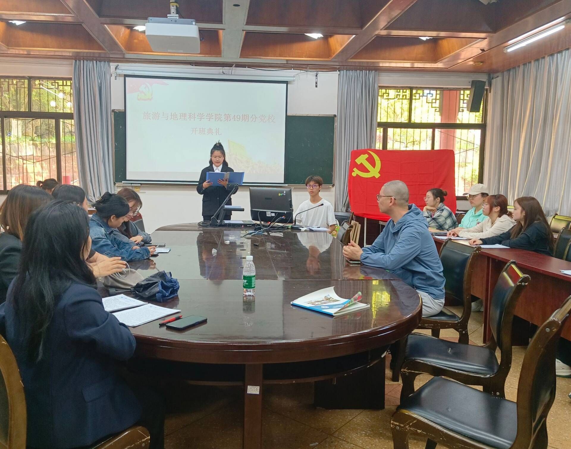 本网讯(文/杨洋 图/钟婷)近日,旅游与地理科学学院第49期分党校开班典礼在旅院楼102教室举行。学院党委专职组织员、第一学生党支部书记孟凡帅,学院第49期分党校全体学员参加了开班典礼。