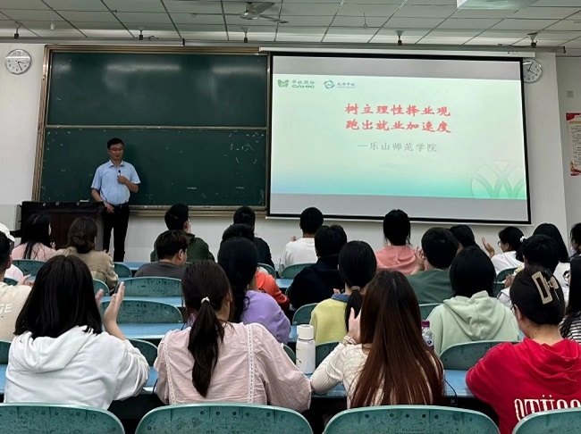 本网讯(文/罗宇航 图/李雨茜)为提升学生的就业意识,促进学生了解就业市场。近日,生科学院在行知楼125教室举办了就业专题讲座。学院党委副书记包天骏、辅导员曹力欢以及大三大四部分学生参加了此次讲座,特别邀请了成都中牧生物药业有限公司的人力资源部总监王得福开展就业专题讲座。