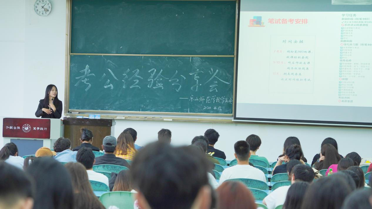 本网讯(文/张诗钰、鲁银萍 图/赵传玉、梁文博)为帮助同学们更好的了解和备战公考,4月18日校学生会在行知楼325教室开展了公考经验分享会。此次分享会特邀上届校学生会主席陈芋伶担任主讲嘉宾,吸引了校级机构与各学院众多有考公意向的同学踊跃参与。