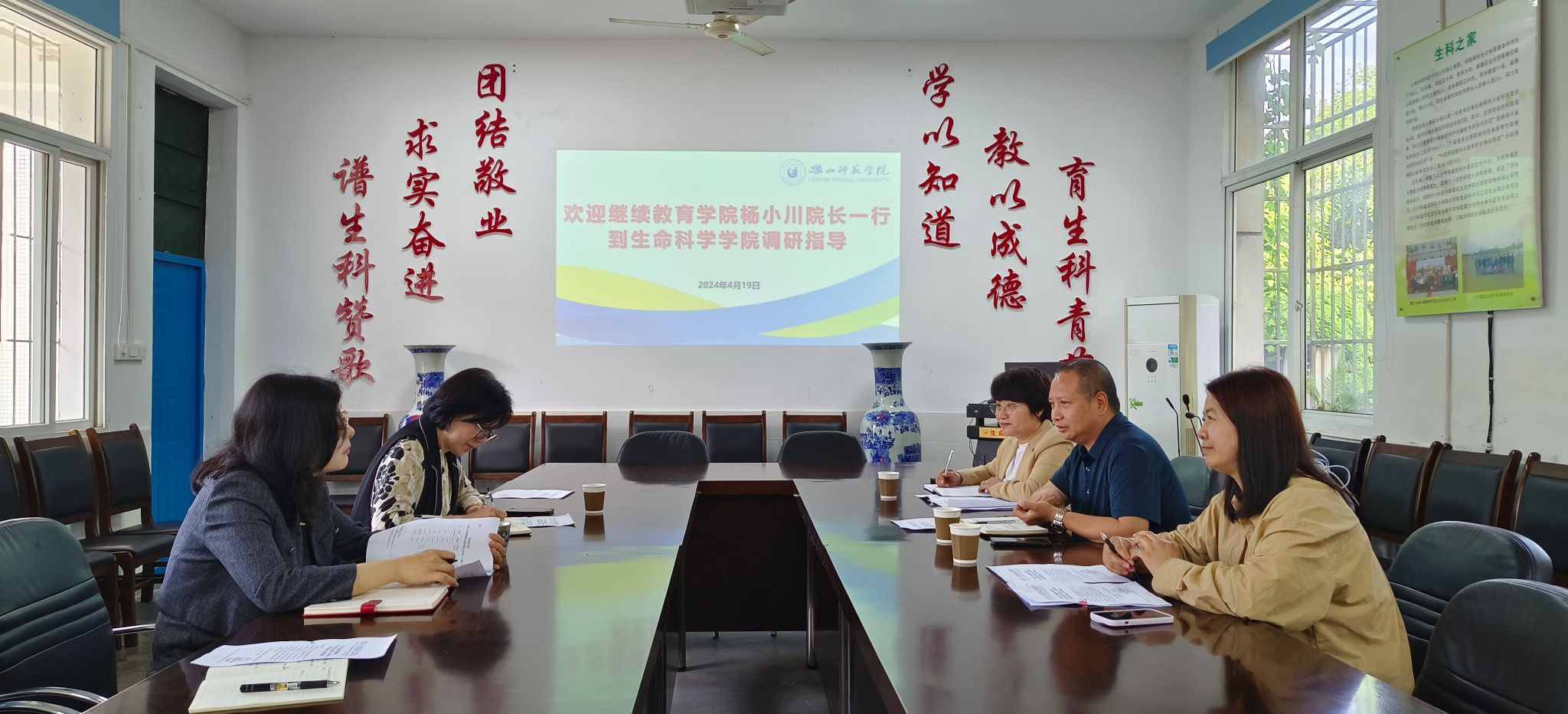 本网讯(文图/易秀琴)4月19日上午,继续教育学院院长杨小川、培训中心办公室主任陈申芝、职业技能认证与鉴定中心主任赵玉芹一行3人到生命科学学院调研指导工作,学院党委书记杨益、院长刘芳、党政办公室主任易秀琴参与了调研会议。