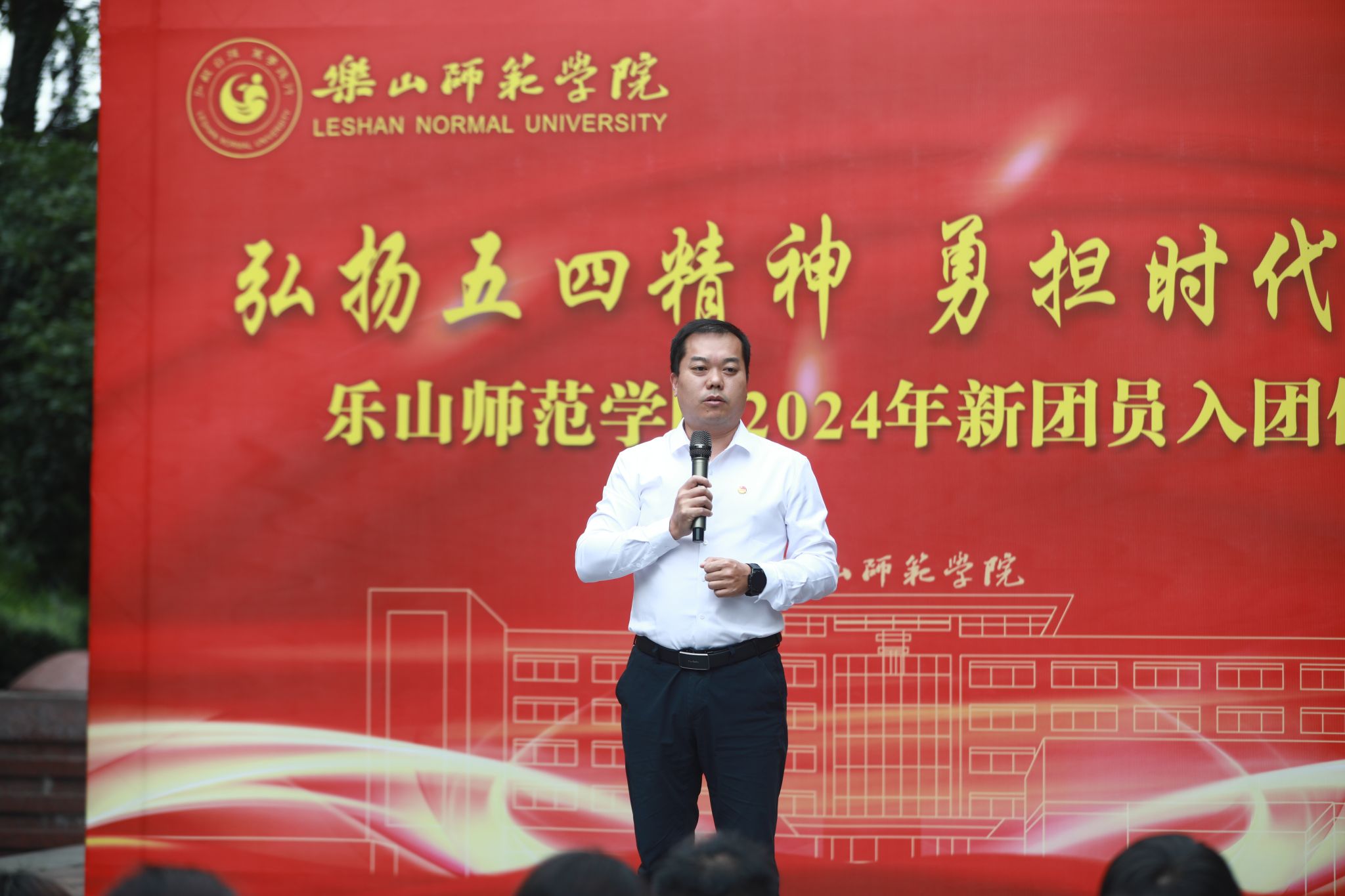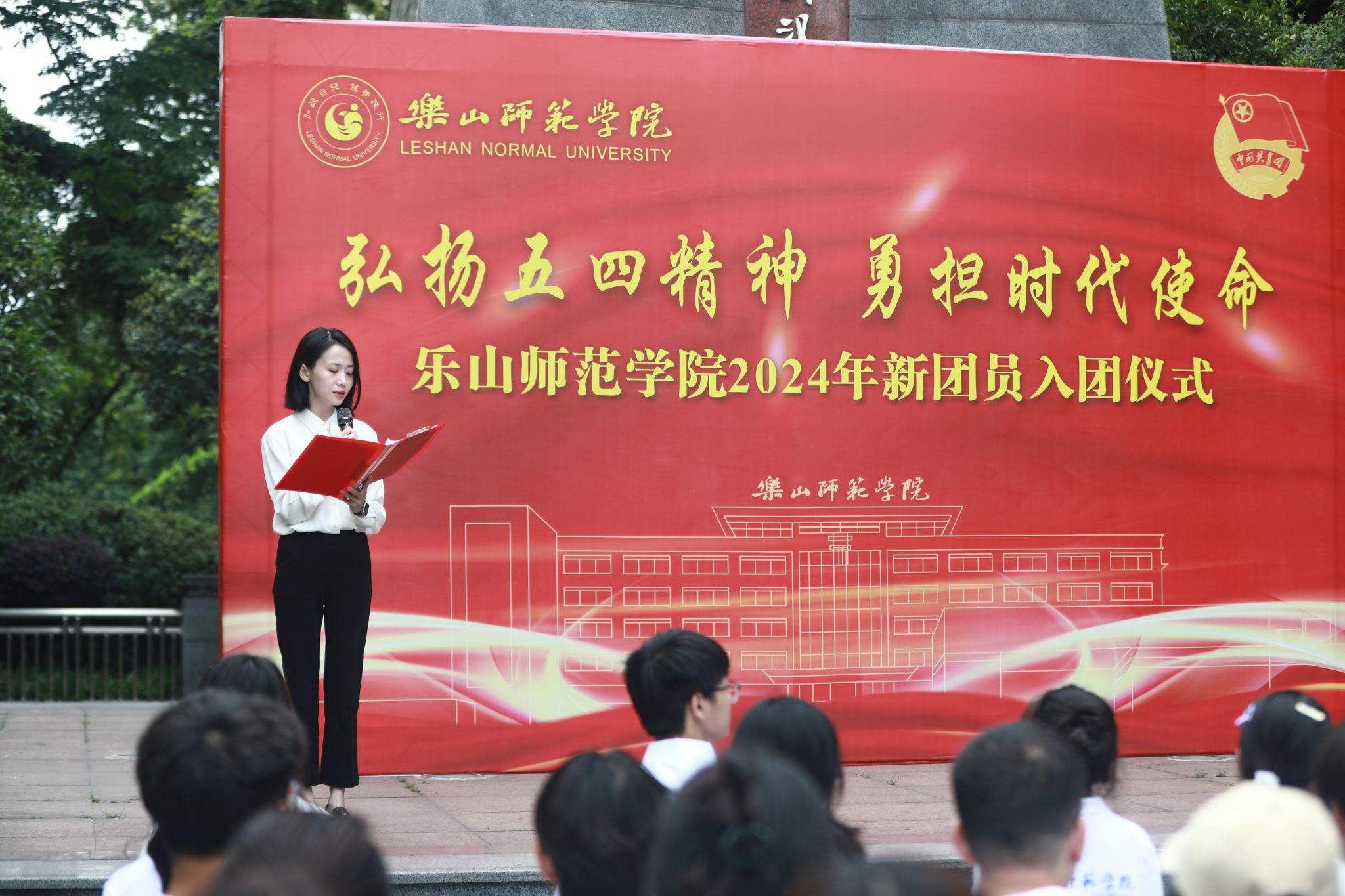 为纪念五四青年节,4月30日中午,校团委隆重举行主题为“弘扬五四精神·勇担时代使命”的乐山师范学院2024年新团员入团仪式,仪式由校团委副书记余雨懁主持。校团委书记李东、团委全体成员、二级学院分团委书记、团委组织部学生干部、各学院新发展团员代表等100位师生参加了入团仪式。