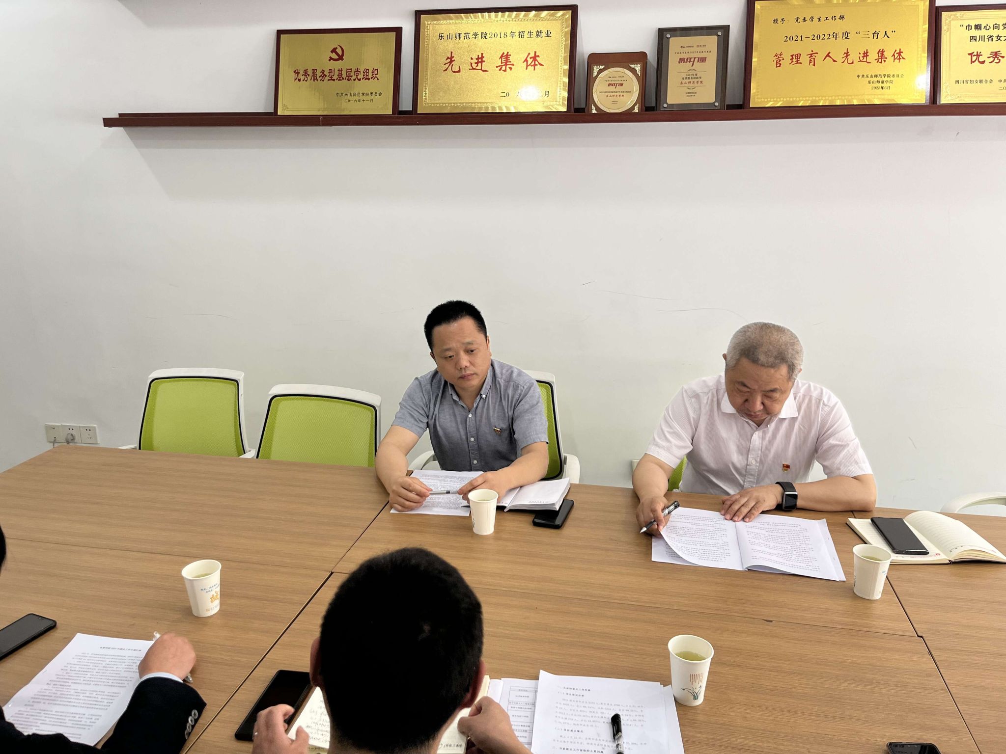 本网讯(文/李月 图/廖盛荣)4月30日下午,驻校纪检组副组长、纪委副书记邹大勇,正处级纪检专员何永红一行到学工部调研督导就业工作,学工部副部长南麒,经济管理学院党委副书记丁敏娜,电子与人工职能学院党委副书记李骏,音乐学院党委副书记余友情,就业中心全体人员参加座谈会。