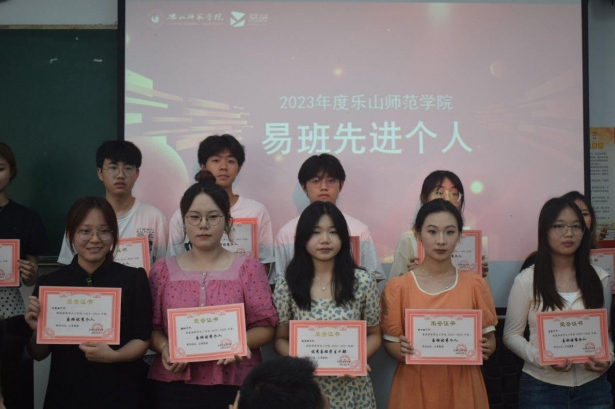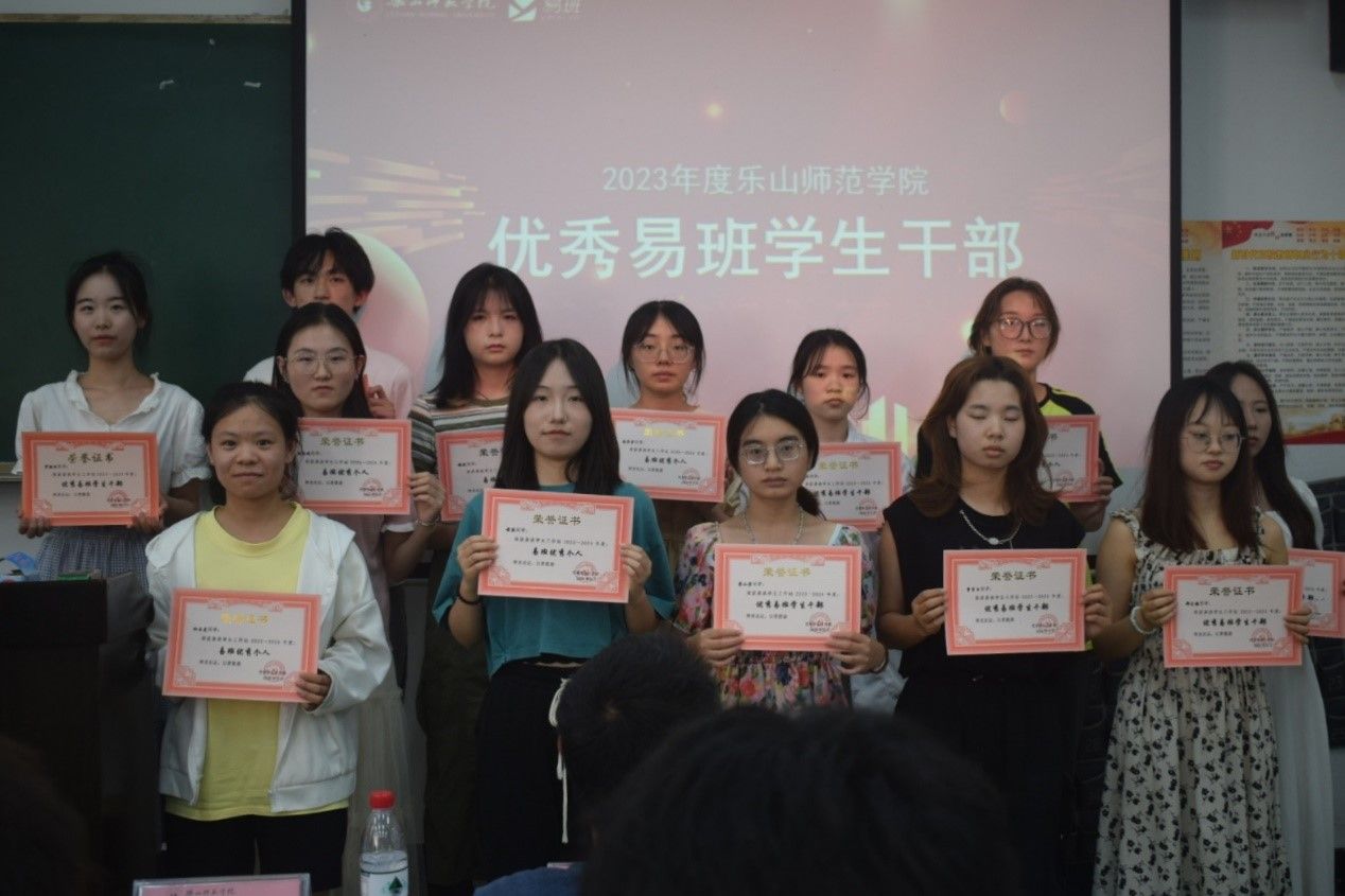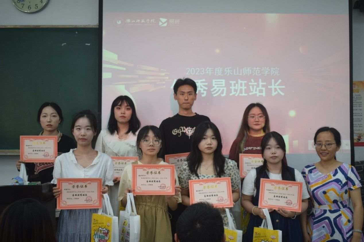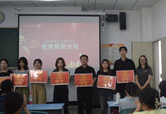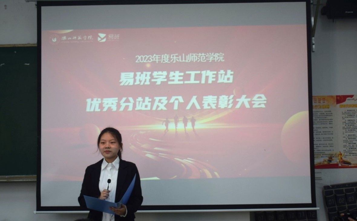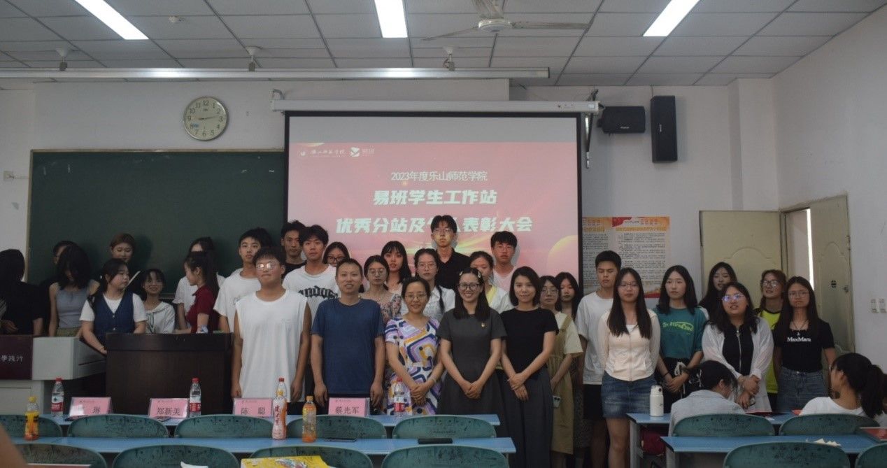本网讯(文/杨思语 图/童晓莉)乐山师范学院于5月23日下午在行知楼112教室举行了2023年度易班学生工作站优秀分站及个人表彰大会,校易班指导老师郑新美、二级学院易班分站指导老师曹琳、陈聪、蔡光军以及易班工作站学生代表们参加了此次表彰大会。
