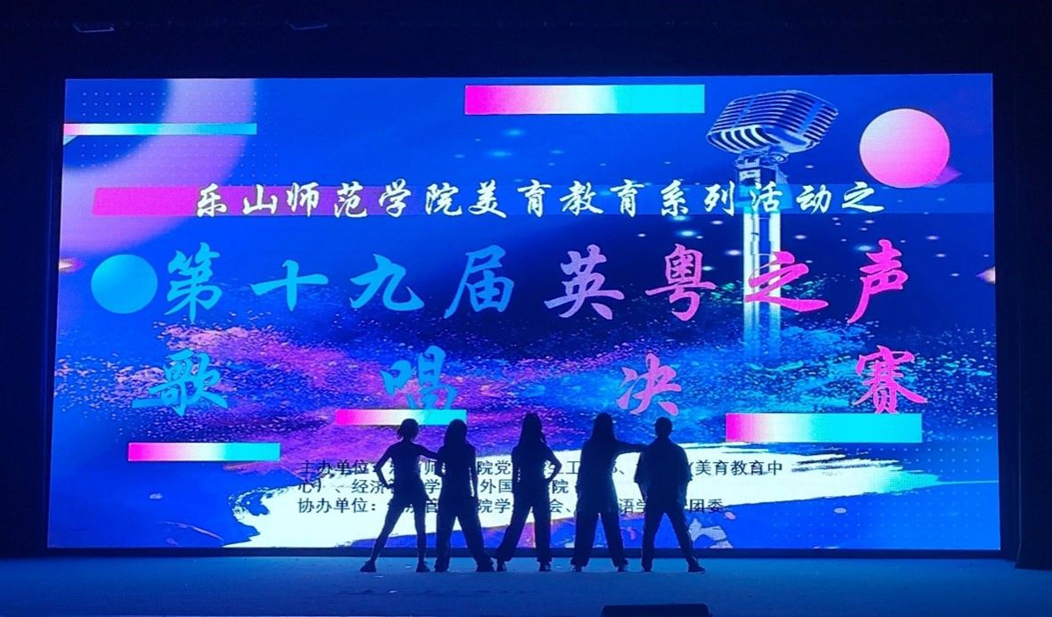 本网讯(文/杨思语 图/杨梦圆、吴双、罗晓语、何小沙)5月30日,由乐山师范学院党委学生工作部、校团委(美育教育中心)、经济管理学院、外国语学院主办,经济管理学院学生分会、外国语学院分团委协办的第十九届英粤之声歌唱决赛在实训楼多功能厅如期举行。外国语学院秦亚男、宋郁思、陈雁秋老师,音乐学院学生分会主席范云川,百事校园最强音冠军岳子馨五位评委嘉宾以及几百位观众来到了决赛现场。