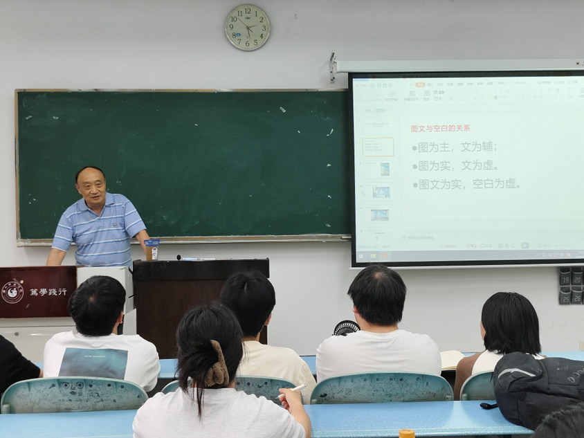 本网讯(文/罗代丽 图/李佳怡)为了提升同学们对平面广告设计的认识与兴趣,拓展专业视野,6月6日下午,经济管理学院在行知楼109教室开展了“平面广告设计的构图与色彩”专题讲座。本次讲座由经济管理学院督导詹虎教授主讲,23级工程造价专业同学参与了本次讲座。