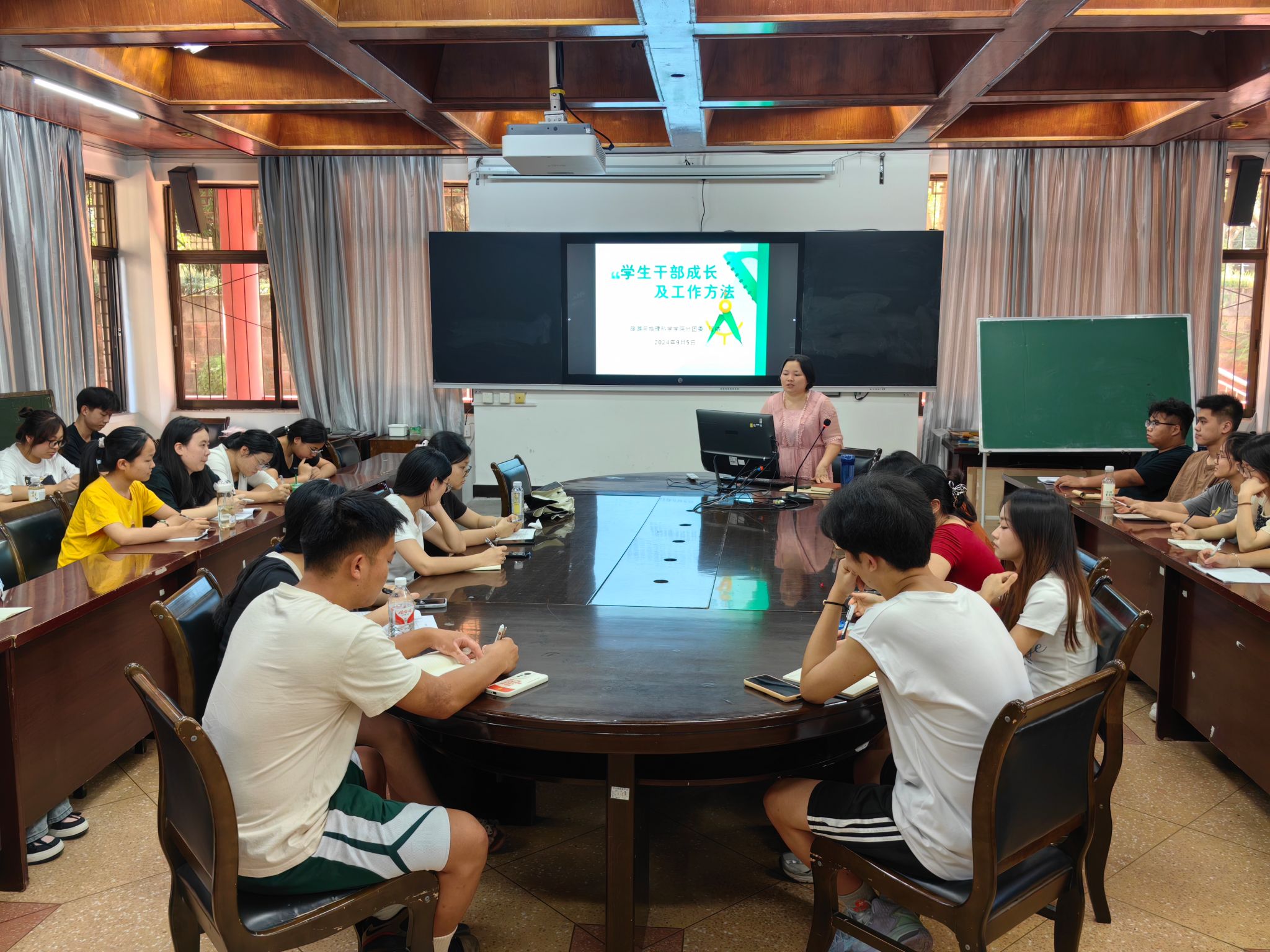 本网讯(文/江纳 图/刘涛)为提升学生干部的工作能力与团队协作精神,为学生团学组织的未来发展注入新的活力,9月5日下午,旅游与地理科学学院全体学生干部在实验楼102教室参加了主题为“学生干部成长及工作方法”的培训会。本次培训主讲人为学院分团委书记江纳。