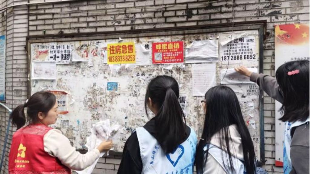 活动当天,电智学院的志愿者们身着统一的服装,带着清洁工具,早早地来到了竹公溪社区。他们分成多个小组,迅速投入到紧张而有序的志愿服务中。首先,在社区的安排下,志愿者们对墙上的小广告进行了全面清理,他们耐心地用小铲子、喷壶等工具,一点一点地将顽固的小广告从墙上铲除,恢复了墙面的整洁与美观。其次,志愿者们转战公园,开始了落叶和废弃物的清理工作并细心地擦拭了公园的长椅和健身器材,公园的环境变得更加清新宜人,长椅和健身器材也更加干净整洁,方便居民使用。最后,整理共享单车也是此次志愿服务的重要内容之一,志愿者们将随意停放的共享单车摆放整齐,为居民提供了更加便捷、安全的出行方式。