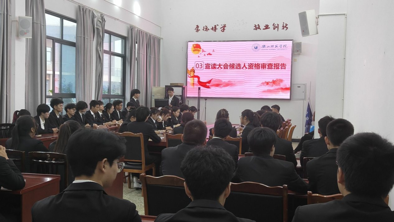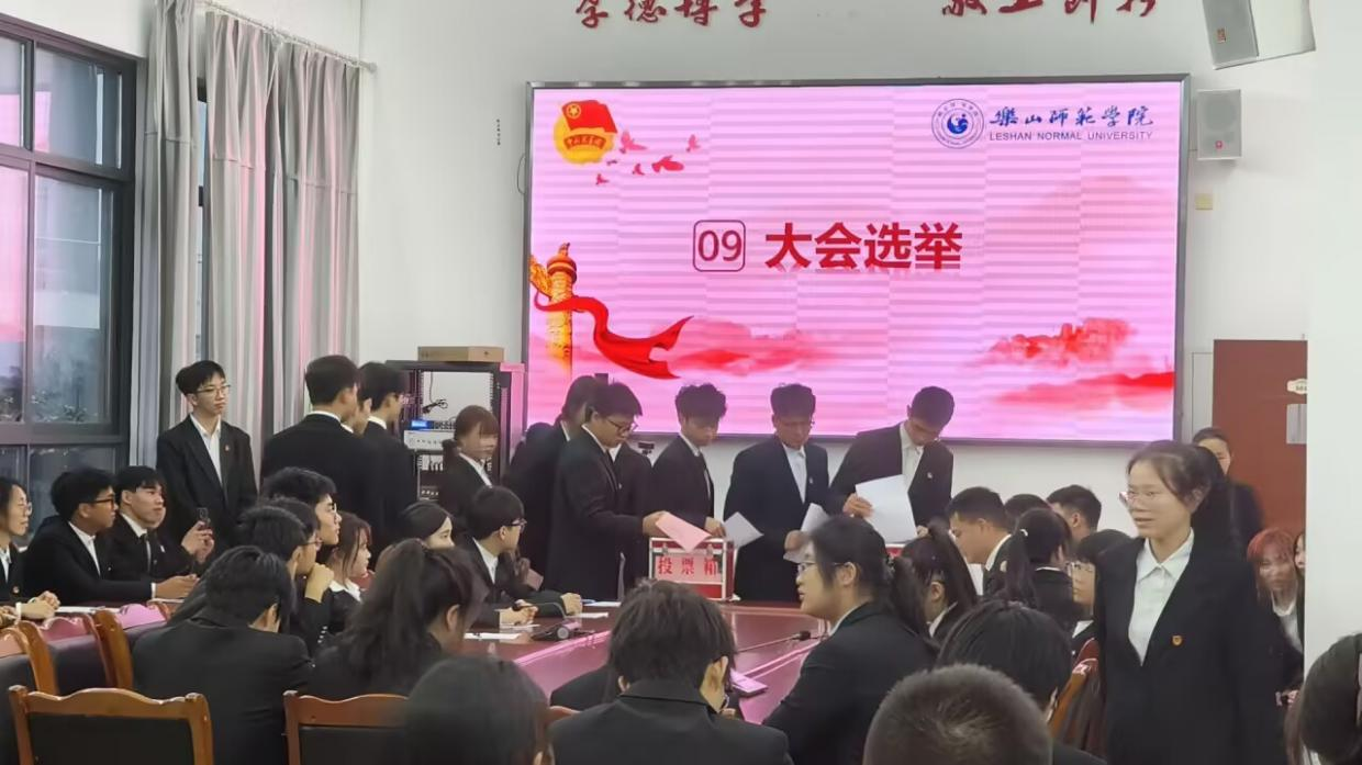 大会审议并通过了《乐山师范学院电子信息与人工智能学院学生代表选举办法》,通过无记名投票的方式选出新一任分团委委员会书记和委员、学生分会主席和委员以及乐山师范学院学生代表大会候选人名单。最后,肖苗对大会致闭幕词,希望同学们在今后工作中要提高政治站位,学习宣传贯彻好党的二十届三中全会精神;坚持全面从严治团,锤炼优良作风和扎实本领;做好校园文化建设的开拓者,明确任务、服务大局。