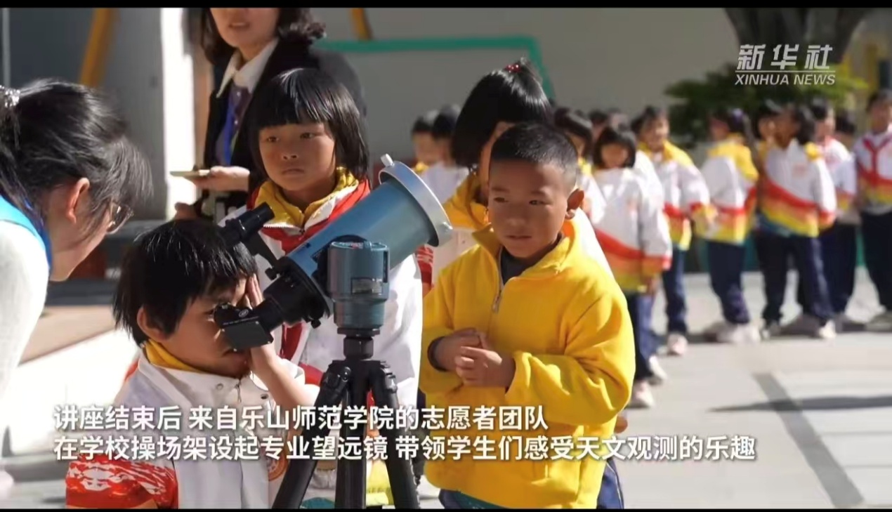 活动期间,我校志愿者团队在学校操场架设起专业望远镜带领学生们感受天文观测的乐趣。学院“雪域星途”志愿者团队指导老师江林巧博士接受新华社专访,系统介绍了学院在天文科普领域的实践经验与未来规划,展现了学院师生深耕科普、服务社会的责任担当。