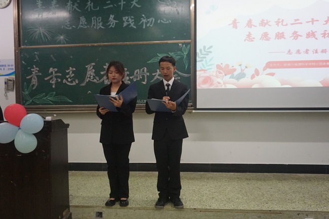 本网讯(文/张雯 图/江馨雨)为弘扬志愿服务精神,在社会中实现自我价值。11月20日,旅游与地理科学学院在行知楼201教室与214教室举办了青年志愿者注册大会。莅临本次大会的有学院分团委书记江纳,旅地学院分团委、学生分会、青年传媒中心学生干部,22级全体学子参加了此次大会。