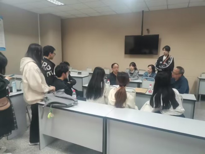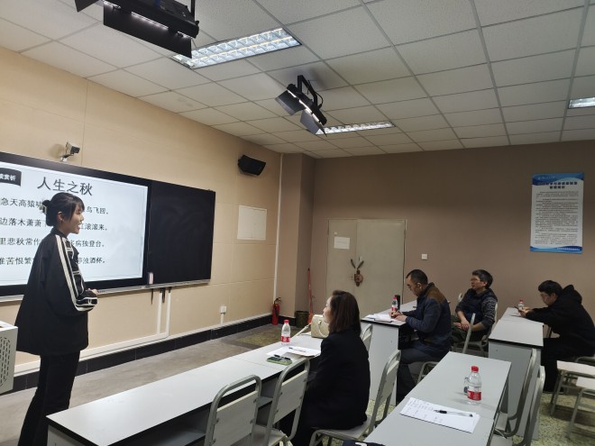 本网讯(文、图/可晓峰)3月16晚,文学与新闻学院2020级汉语言文学专业师范生试讲试教验收工作在弘毅楼顺利完成。在这次验收工作中,我院首次采用基地校导师与校内导师联合验收的形式进行,邀请了实验中学、草堂高中的语文骨干教师谢红、杨溢、乔科文,与我院语文教学方向的教师杨宏、袁建军,组成校外校内联合验收小组,对2020级汉语言文学专业师范生进行了抽样验收,试讲试教的指导老师也参与了本次验收工作。