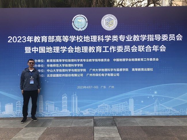 本网讯(文、图/孟凡帅)4月8日至9日,由教育部高等学校地理科学类专业教学指导委员会和中国地理学会地理教育工作委员会主办的2023年教育部高等学校地理科学类专业教学指导委员会暨中国地理学会地理教育工作委员会联合年会顺利召开。此次会议由华南师范大学地理科学学院承办,中山大学地理科学与规划学院、广州大学地理科学与遥感学院、高等教育出版社协办,北京超图软件股份有限公司、广东保伦电子股份有限公司、广东亦莱云科技有限公司对会议的召开予以了支持。旅游与地理科学学院教师孟凡帅参加了本次会议,学院部分教师以在线的形式参加了本次会议。