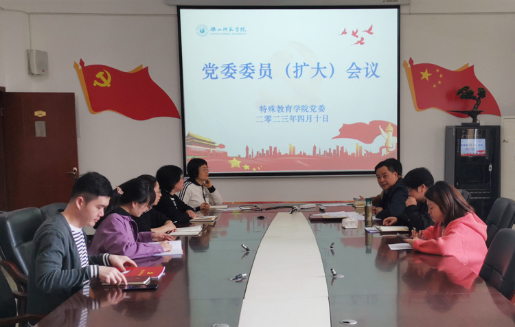 本网讯(文图/张敏) 4月10日上午,特殊教育学院党委在特教大楼A-408会议室召开党委会(扩大)会议,专题学习研讨学校4月7日召开的2023年二级党组织会议精神,部署学院党委2023年重点工作,学院全体党委委员、党支部书记参加了会议。会议由学院党委书记刘宗泉主持。