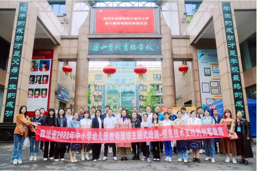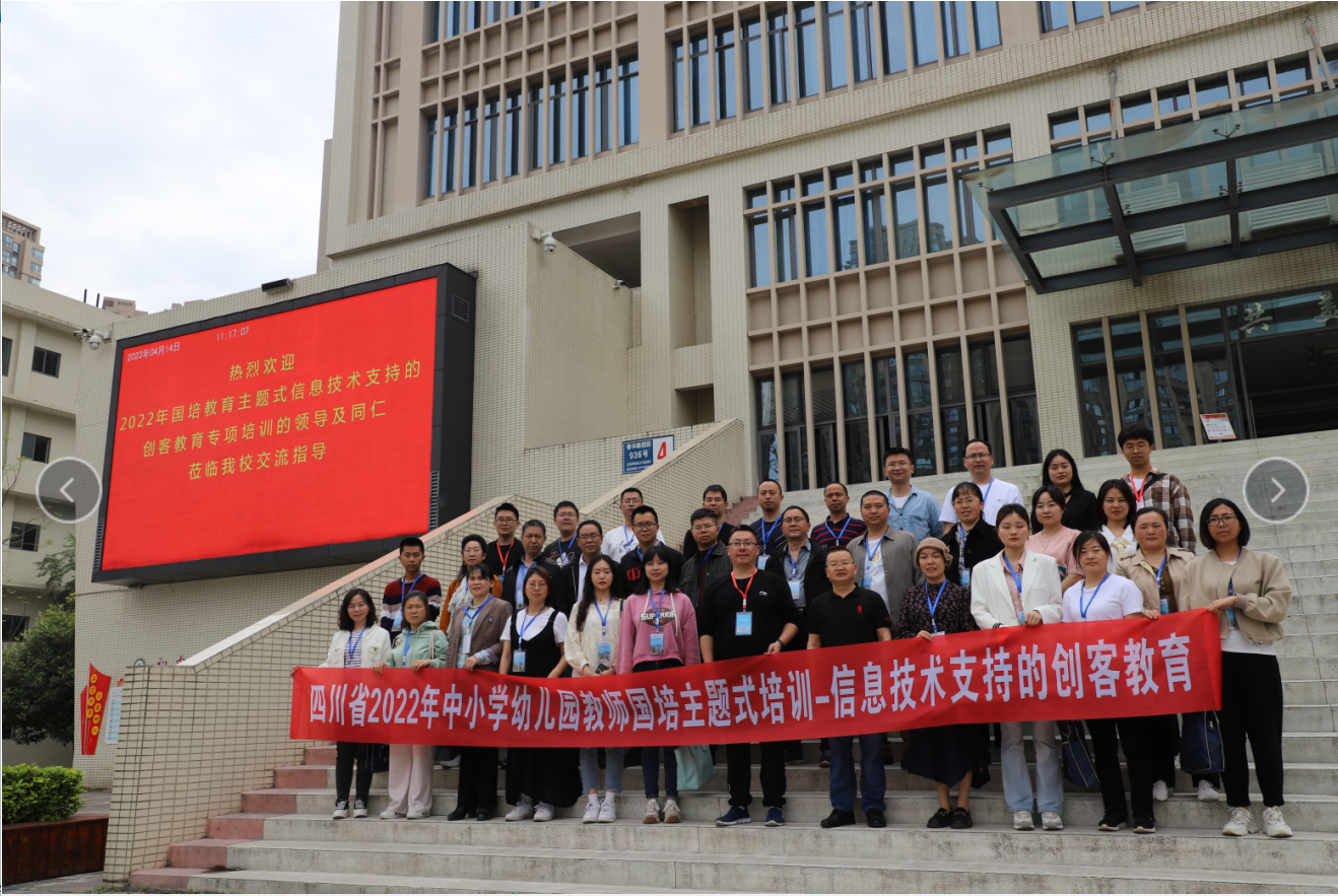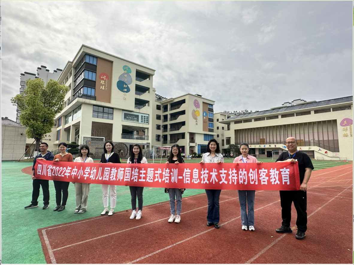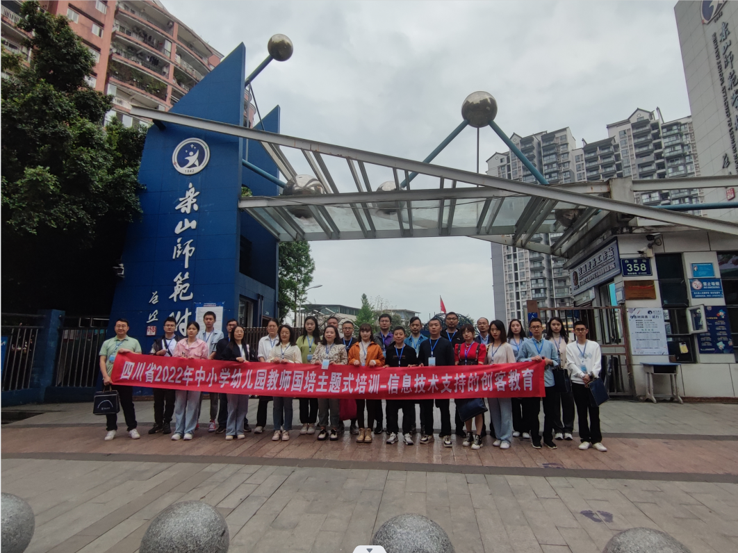 本网讯(文/谭红梅 图/陆奥宇)4月14日早上8:00开始,电子信息与人工智能学院组织四川省中小学幼儿园2022年“国培计划”信息技术支持的创客教育一期100名学员分别到乐山师范附小、乐山嘉州学校、乐山艺术实验学校、乐山海棠实小开展研学活动。电子信息与人工智能学院副院长黄果、信息技术教研室主任秦洪英、班主任刘毅、项炜、谭红梅以及9名志愿者参与了此次带队及服务工作。